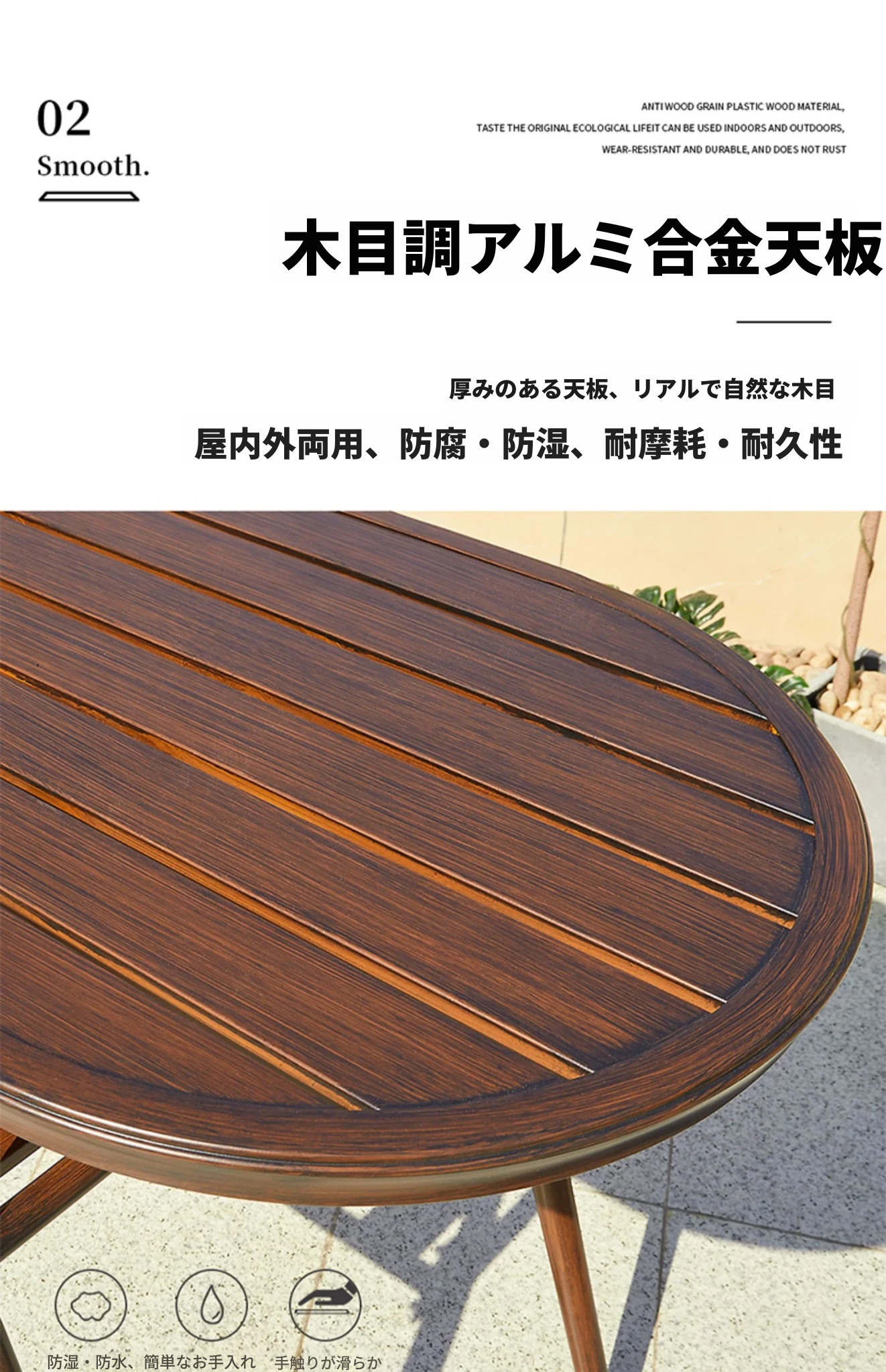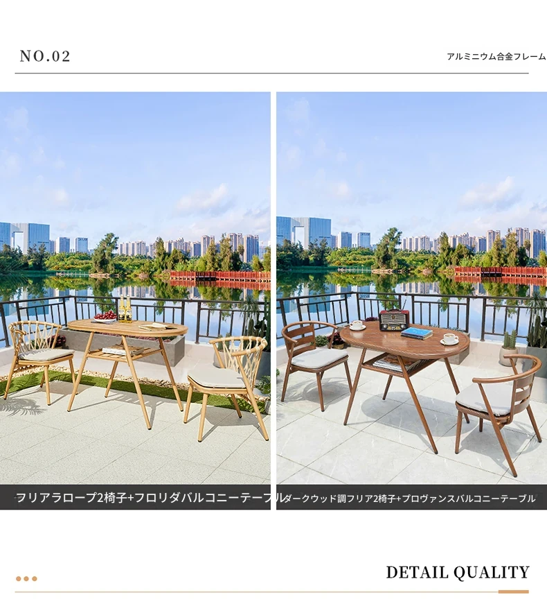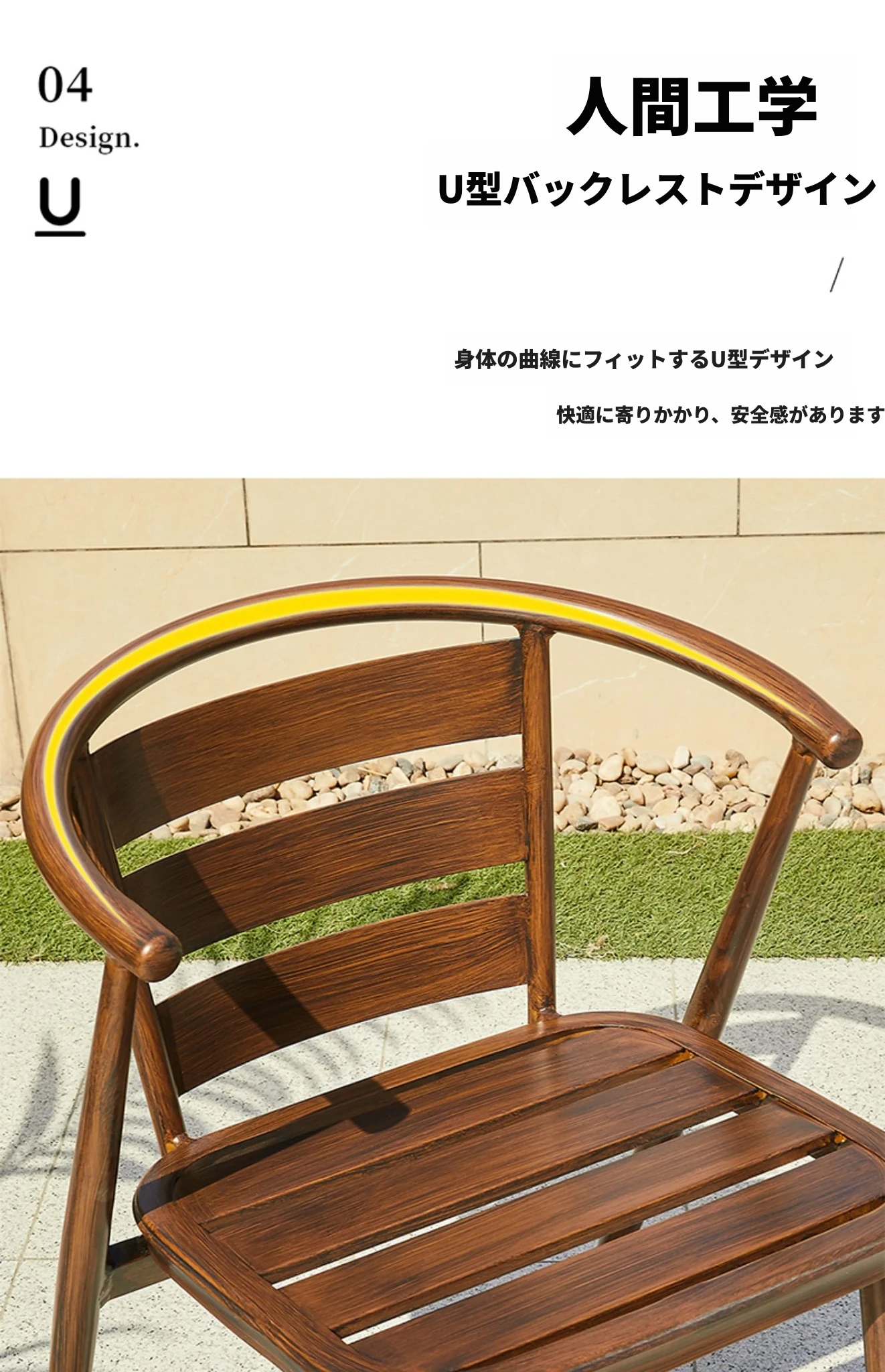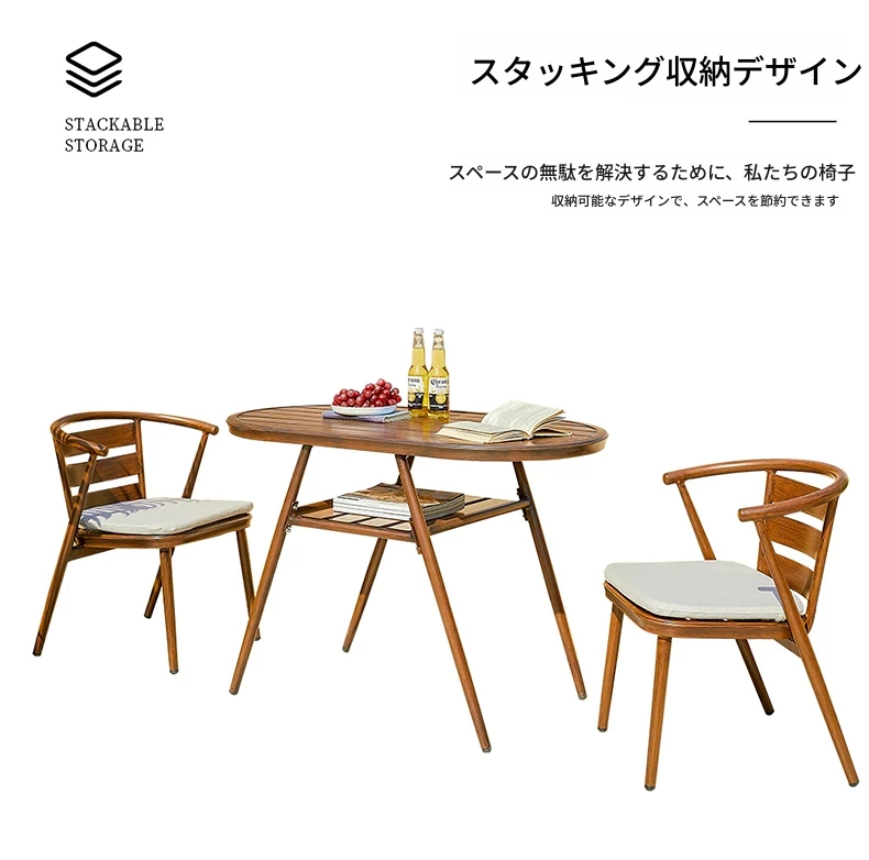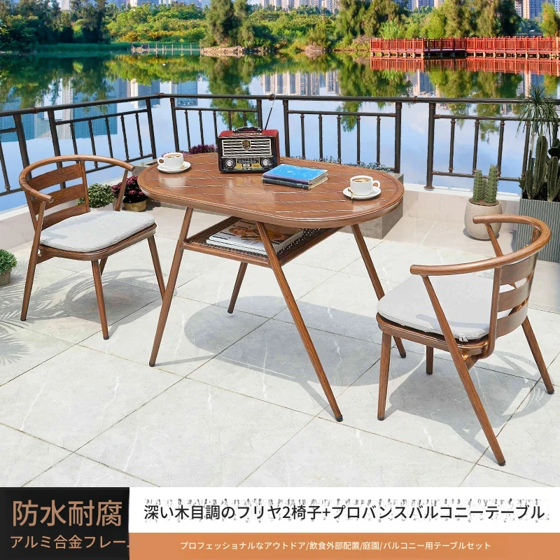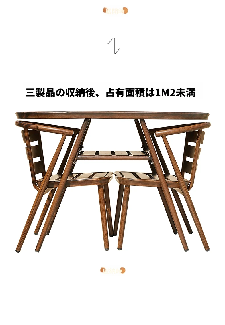 【深木纹】フリアアルミ板椅子2脚+プロバンステーブル 【深木纹】フリアアルミ板椅子2脚+プロバンステーブル