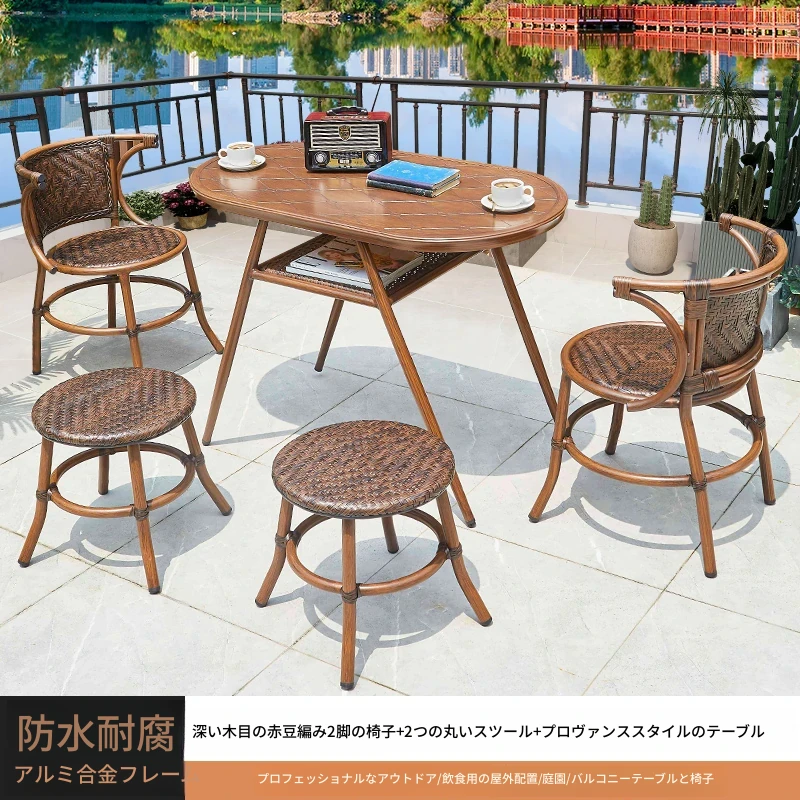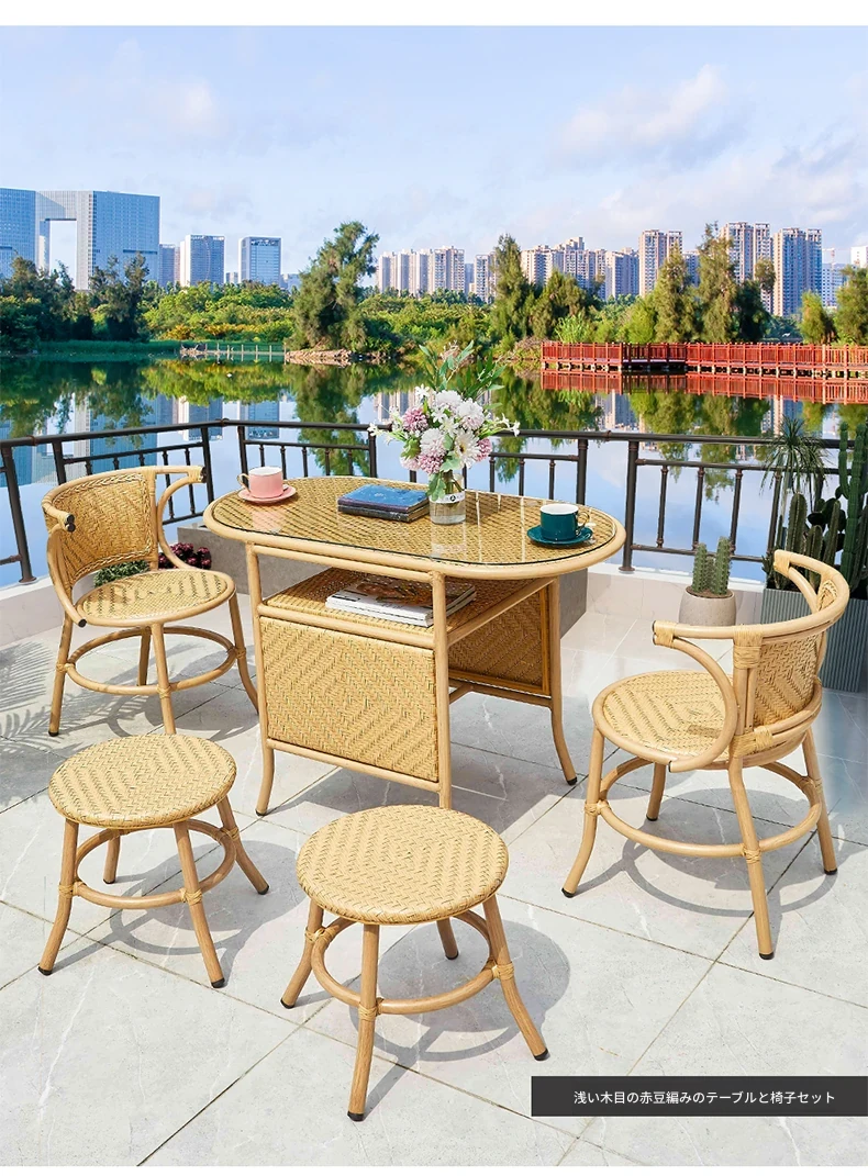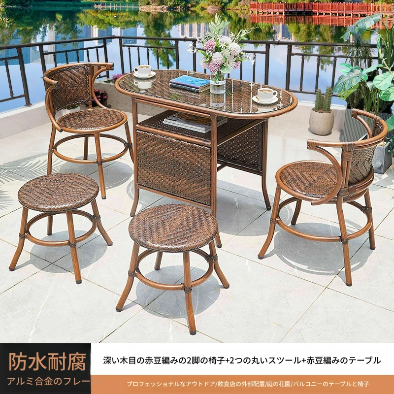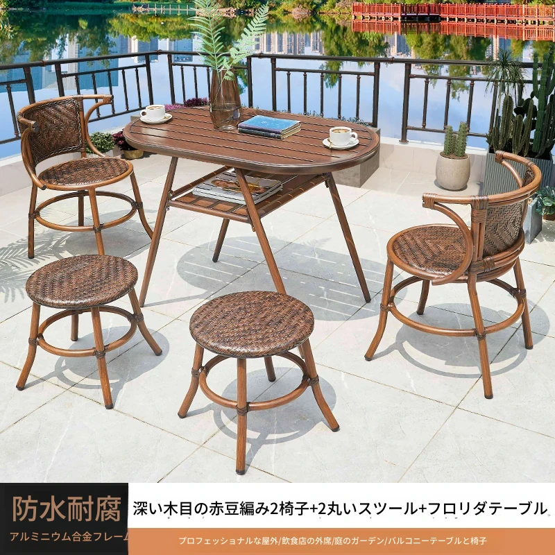 【深木纹】レッドビーン編み椅子2脚+2つの丸いスツール+フロリダテーブル 【深木纹】レッドビーン編み椅子2脚+2つの丸いスツール+フロリダテーブル