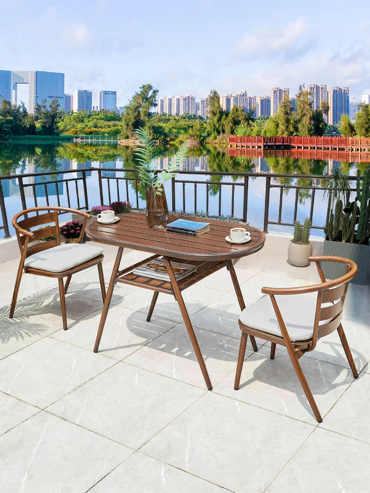 【深木纹】フリアアルミ板椅子2脚+レッドビーン編みテーブル 【深木纹】フリアアルミ板椅子2脚+レッドビーン編みテーブル