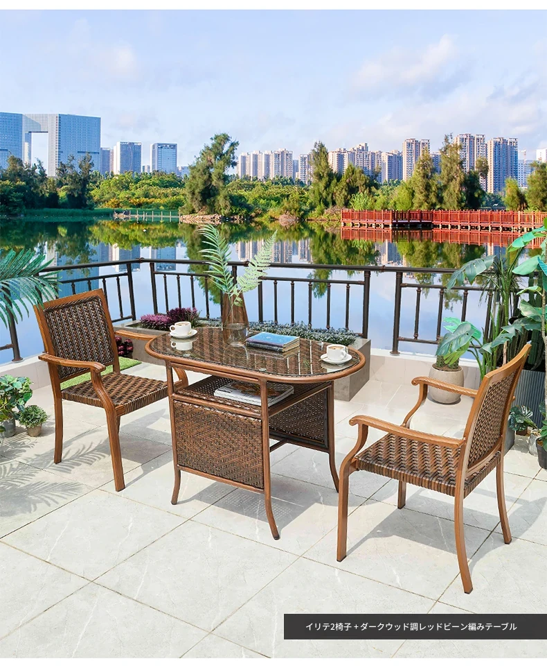 【深木纹】レッドビーン編み椅子2脚+フロリダテーブル 【深木纹】レッドビーン編み椅子2脚+フロリダテーブル