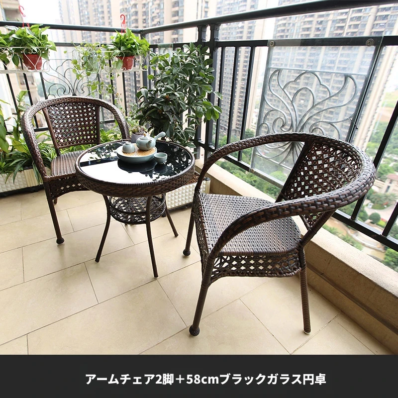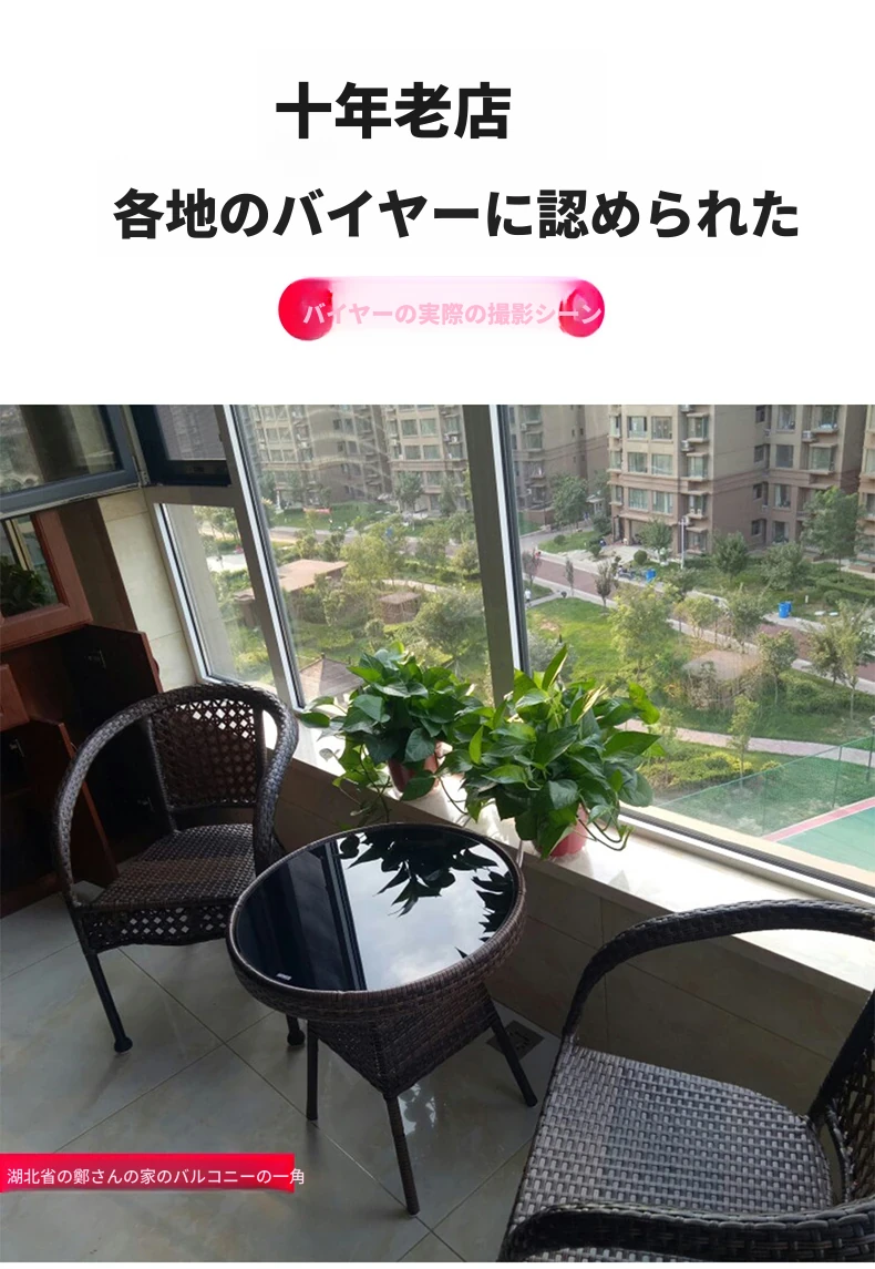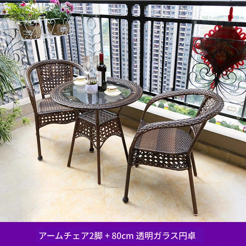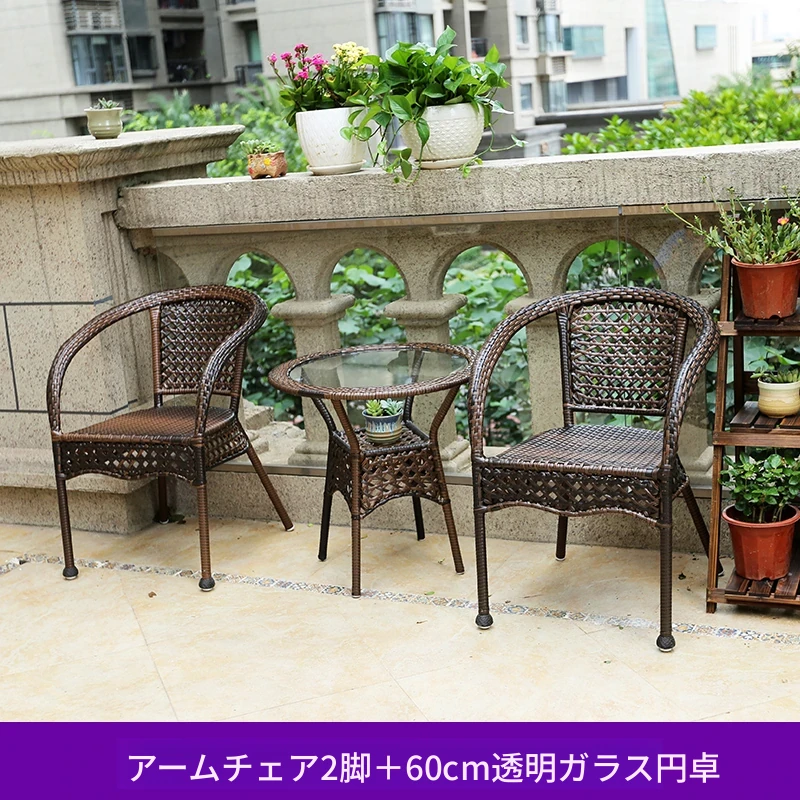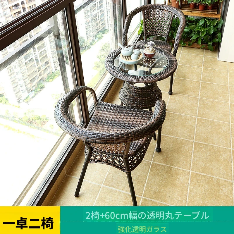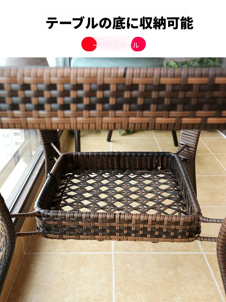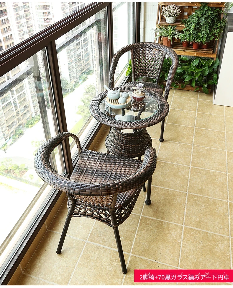 バルコニー用ウィッカー製3点セットテーブル&チェアー - シンプルでスタイリッシュなデザイン、屋外の別荘や庭に最適!リラックスしたひとときを演出する、コンパクトなティーテーブル付き。