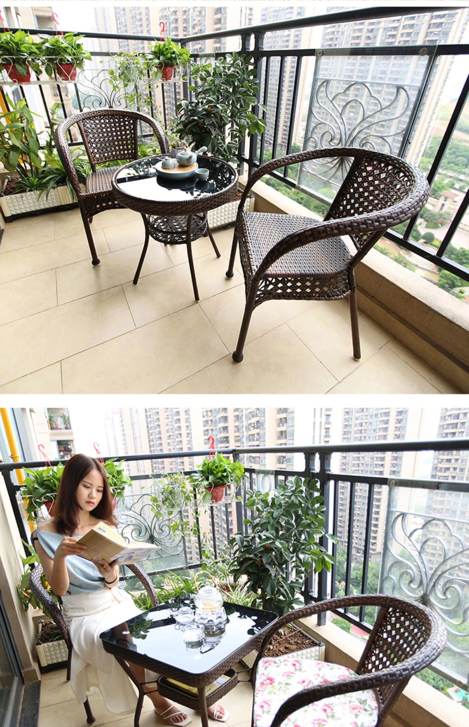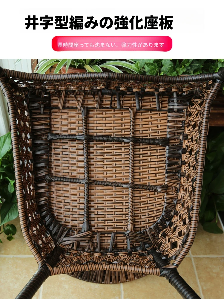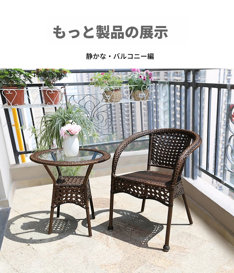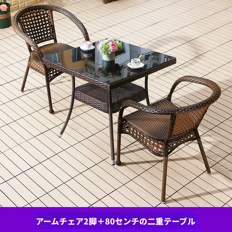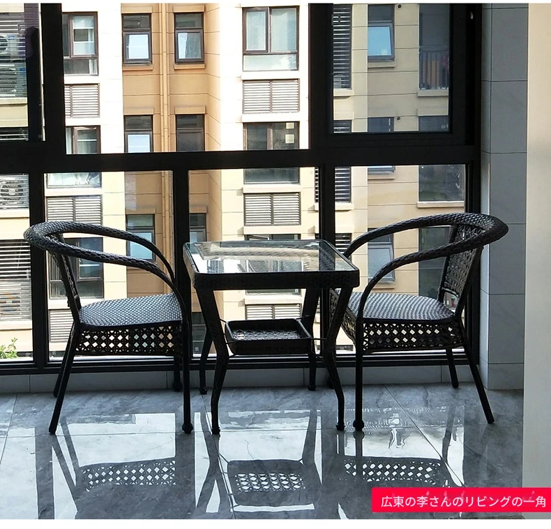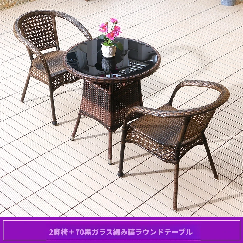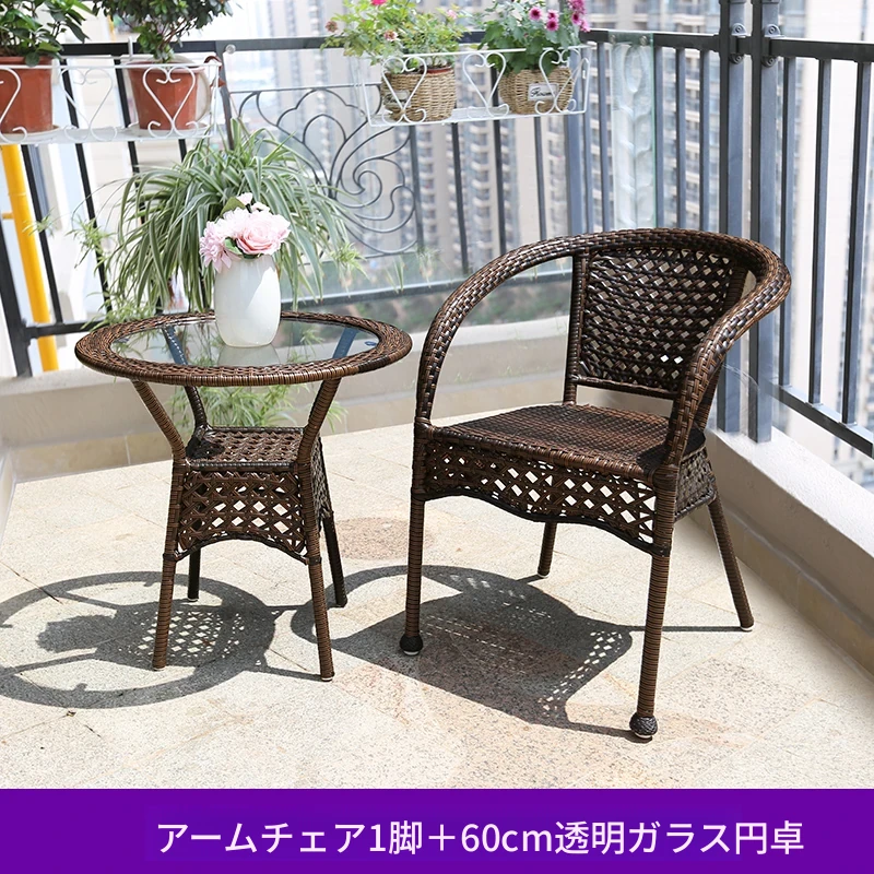 バルコニー用ウィッカー製3点セットテーブル&チェアー - シンプルでスタイリッシュなデザイン、屋外の別荘や庭に最適!リラックスしたひとときを演出する、コンパクトなティーテーブル付き。