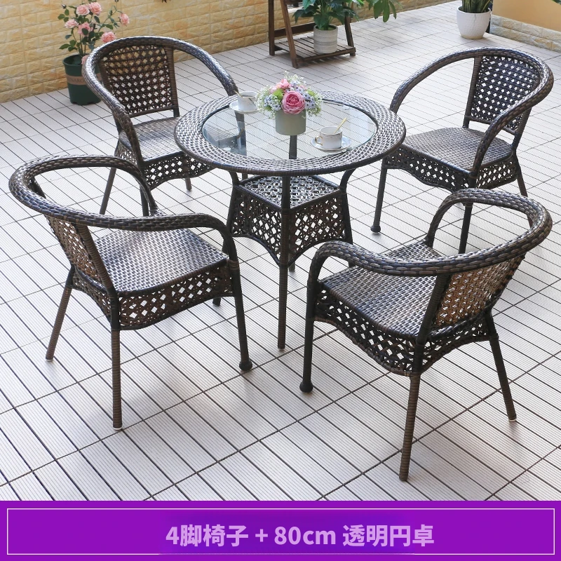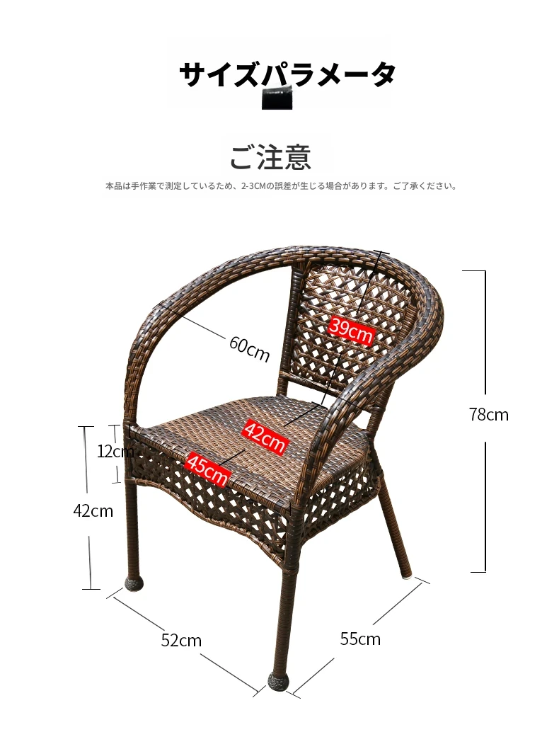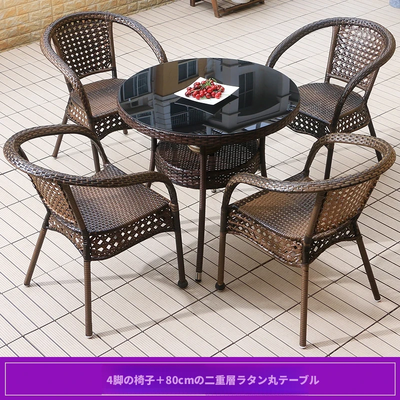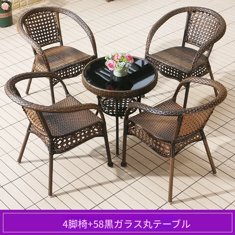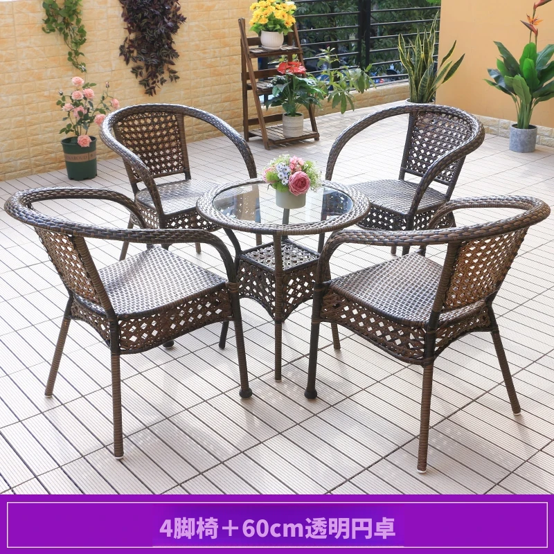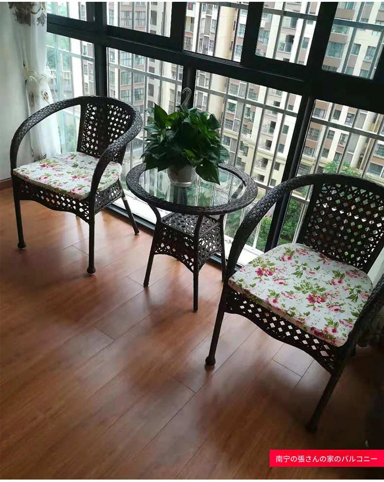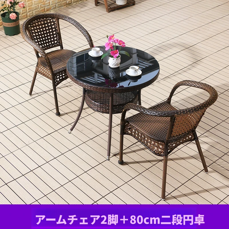 バルコニー用ウィッカー製3点セットテーブル&チェアー - シンプルでスタイリッシュなデザイン、屋外の別荘や庭に最適!リラックスしたひとときを演出する、コンパクトなティーテーブル付き。