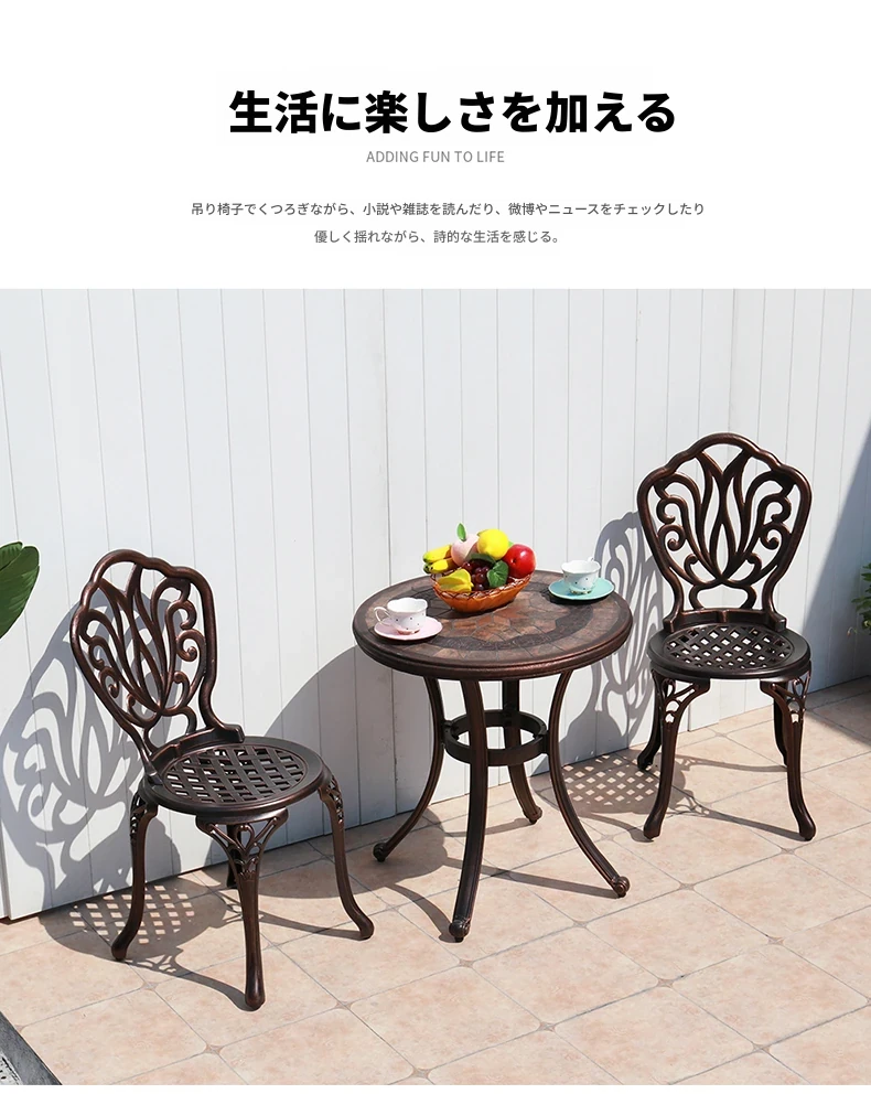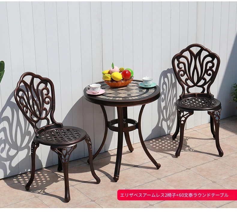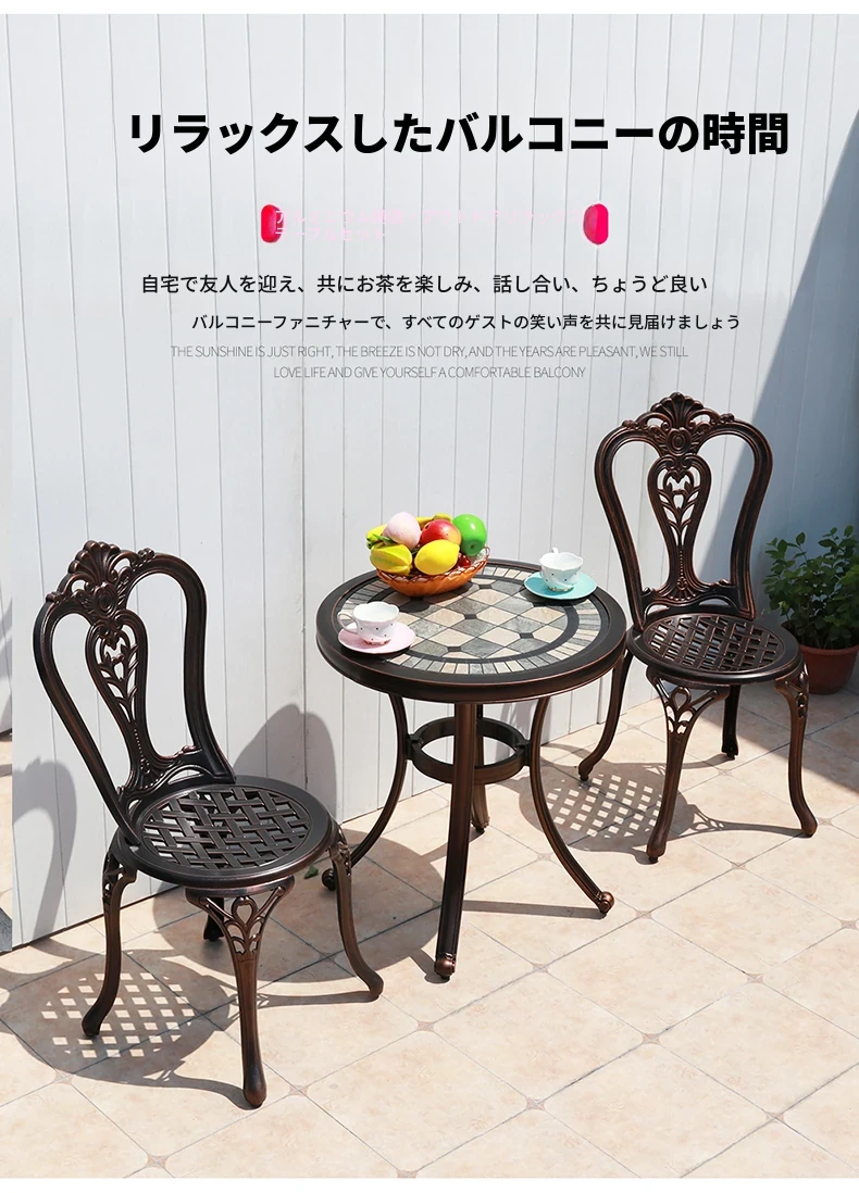 アルミ鋳造のテーブルと椅子セット - おしゃれな中華スタイルのバルコニー用、カフェや庭にぴったりなアウトドアリラックス家具!快適なひとときを演出します。