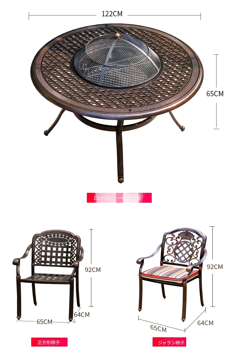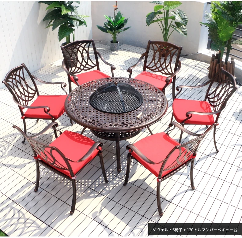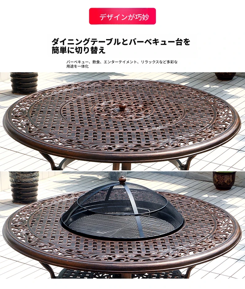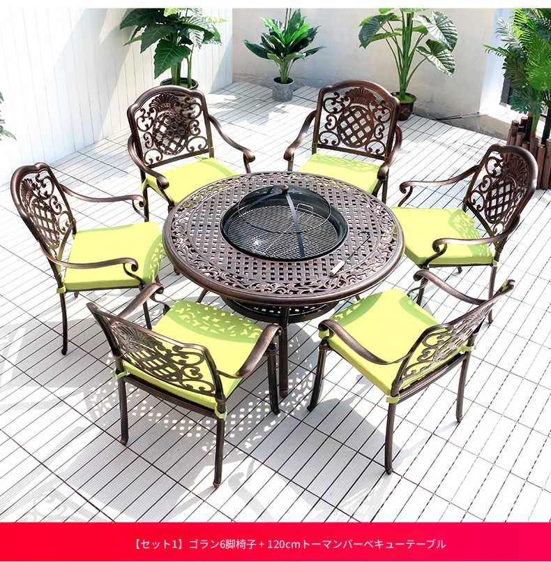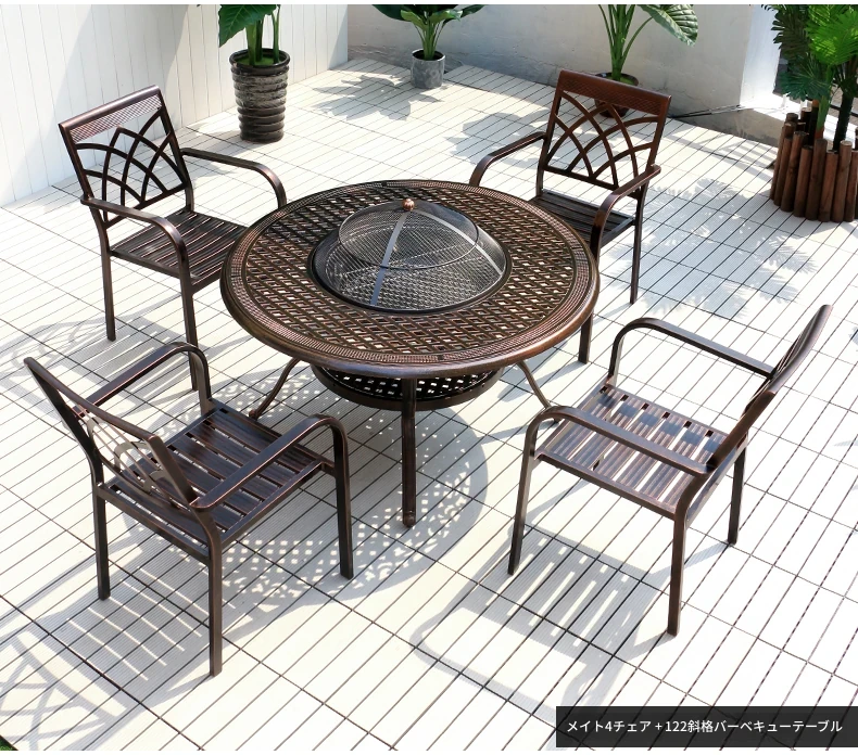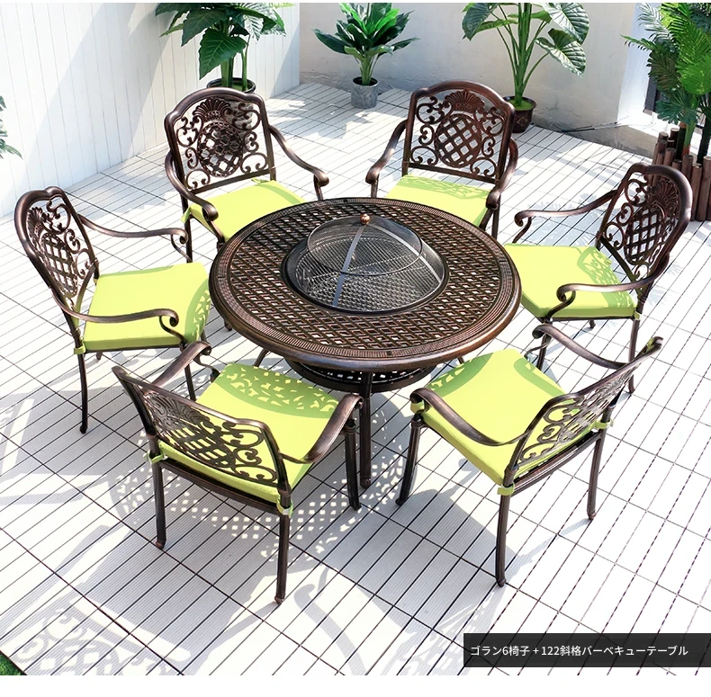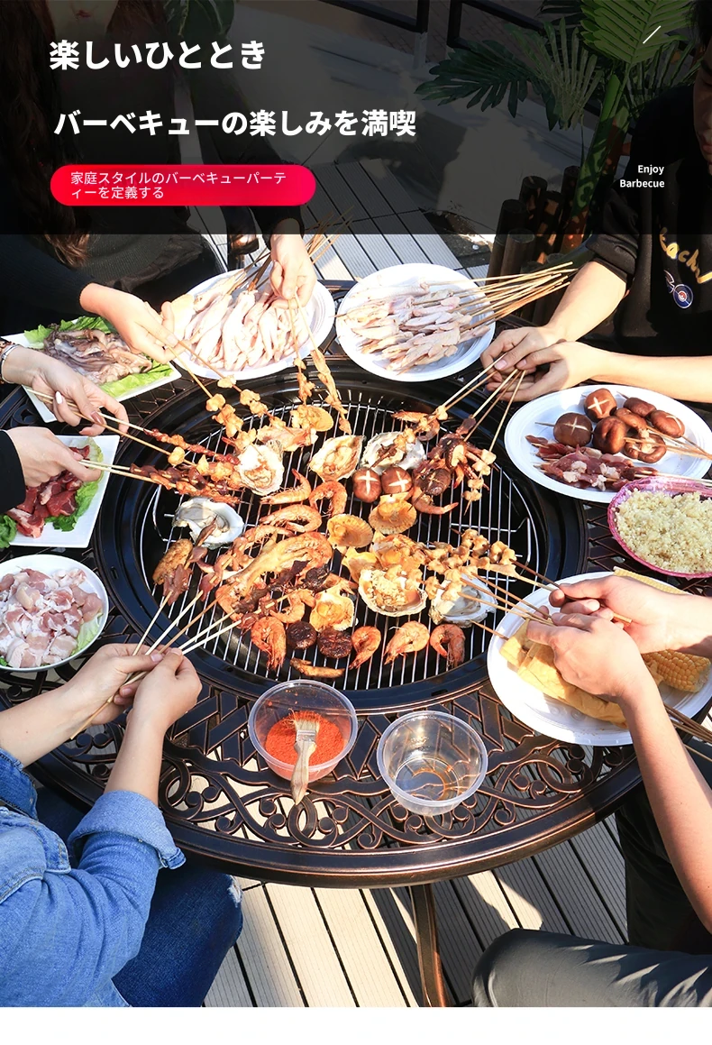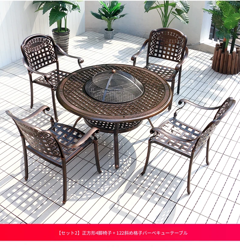 アウトドア家具 ガーデンパティオ アルミ鋳造 炭火焼きテーブル 防腐加工 欧風デザイン 家庭用 室外バルコニーでリラックス - スタイリッシュな空間を演出し、友人や家族との素敵なひとときをお楽しみください!