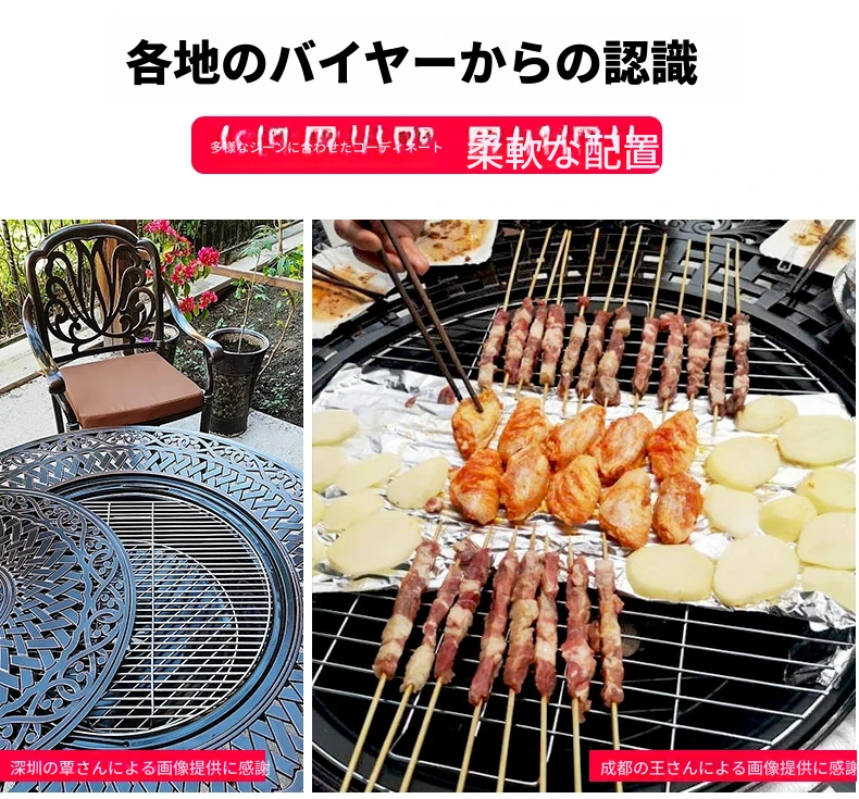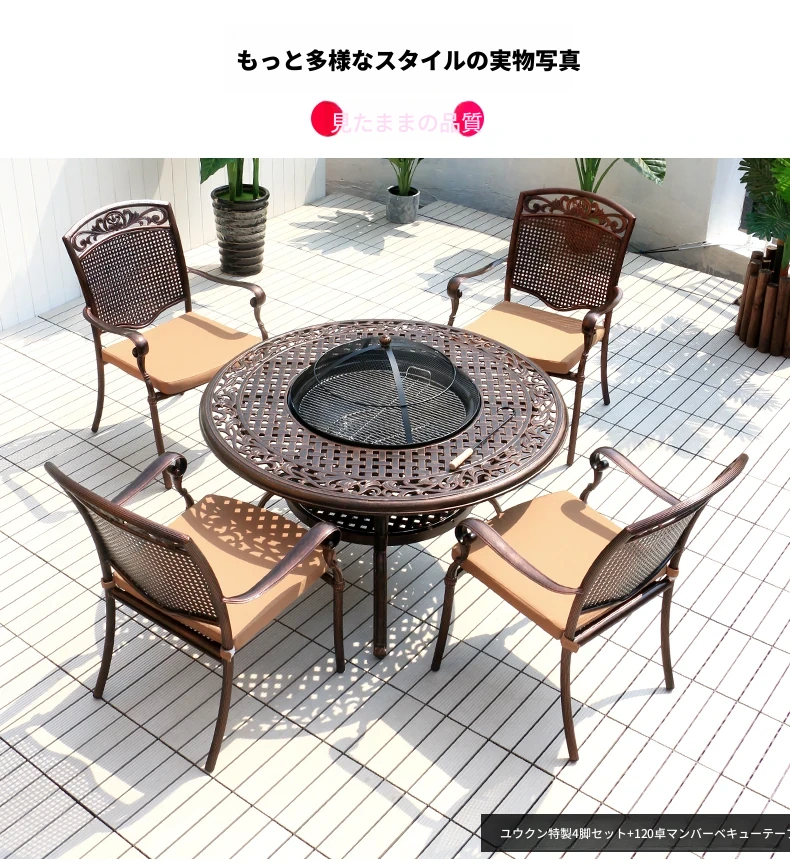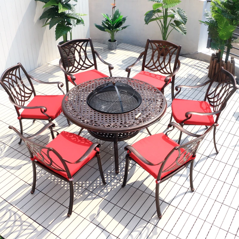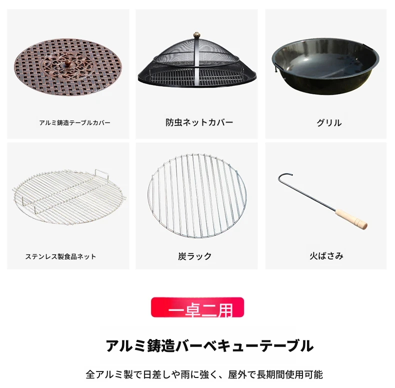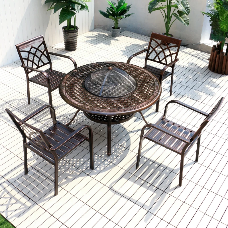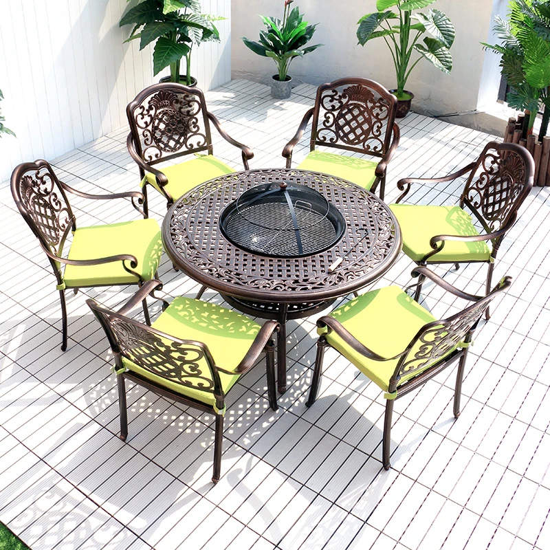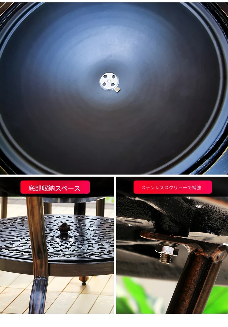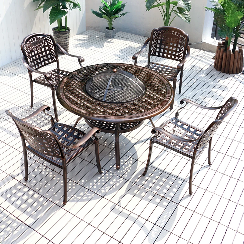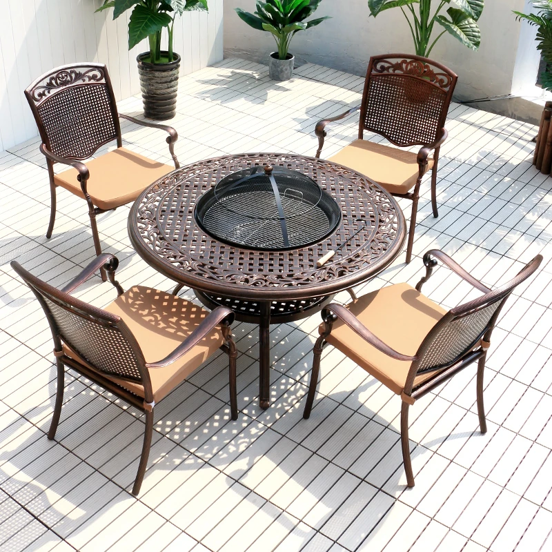 アウトドア家具 ガーデンパティオ アルミ鋳造 炭火焼きテーブル 防腐加工 欧風デザイン 家庭用 室外バルコニーでリラックス - スタイリッシュな空間を演出し、友人や家族との素敵なひとときをお楽しみください!