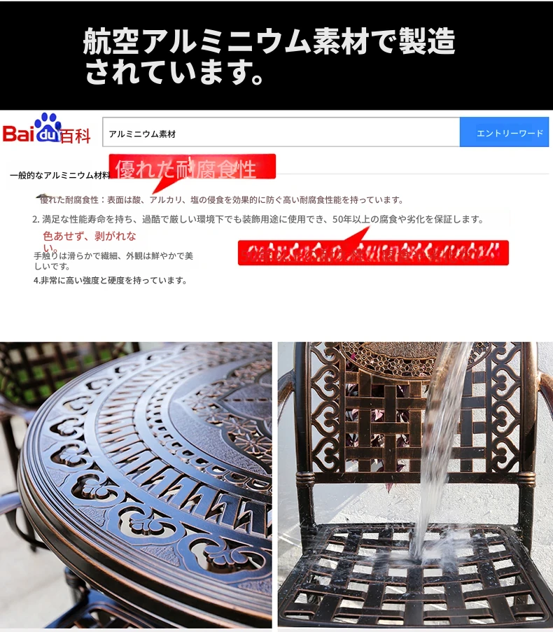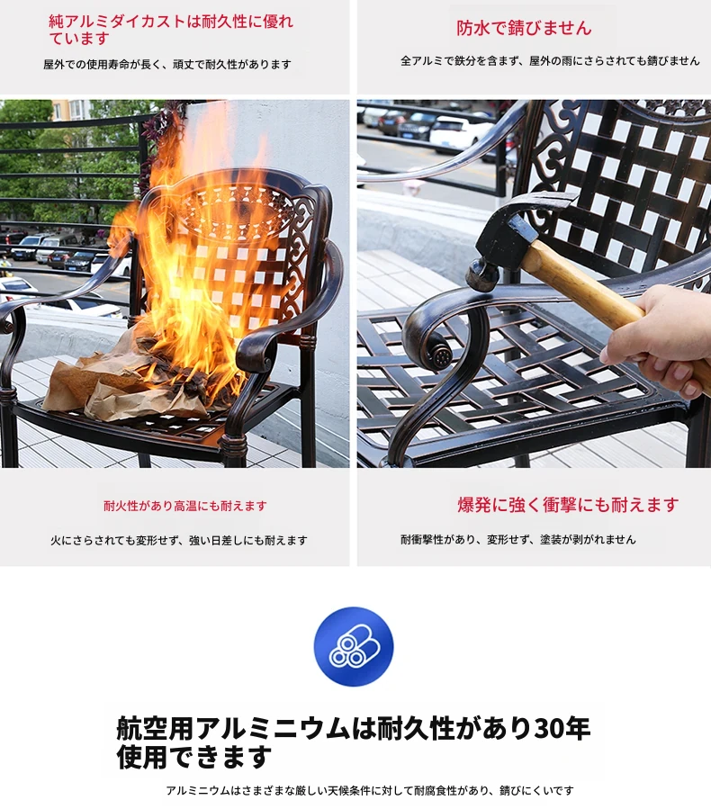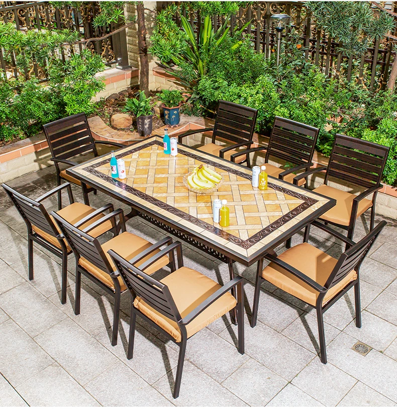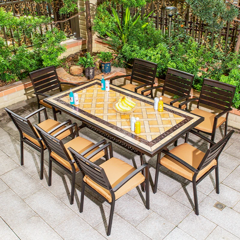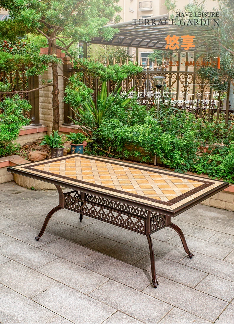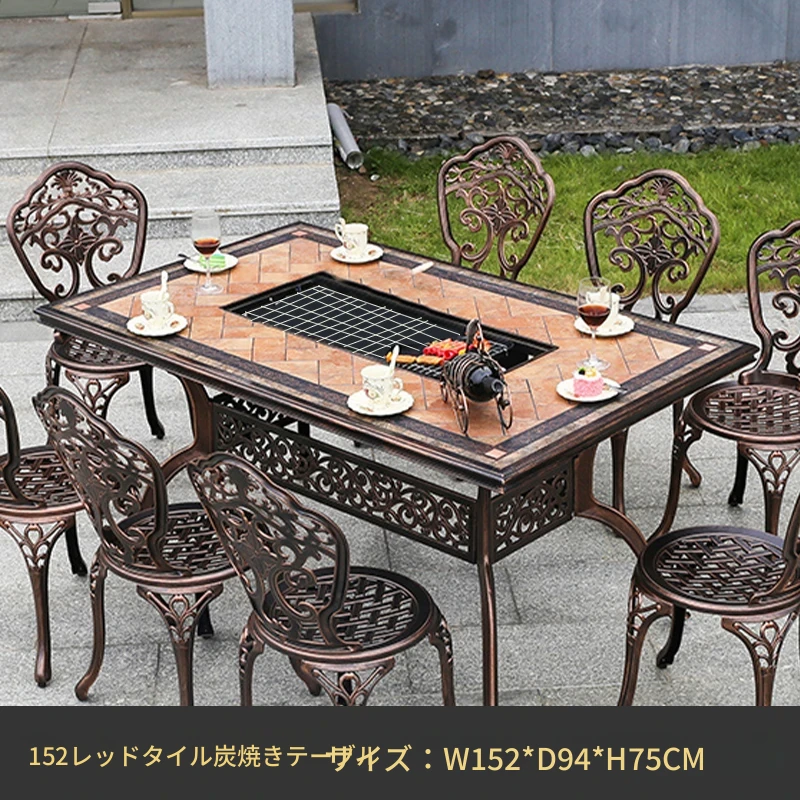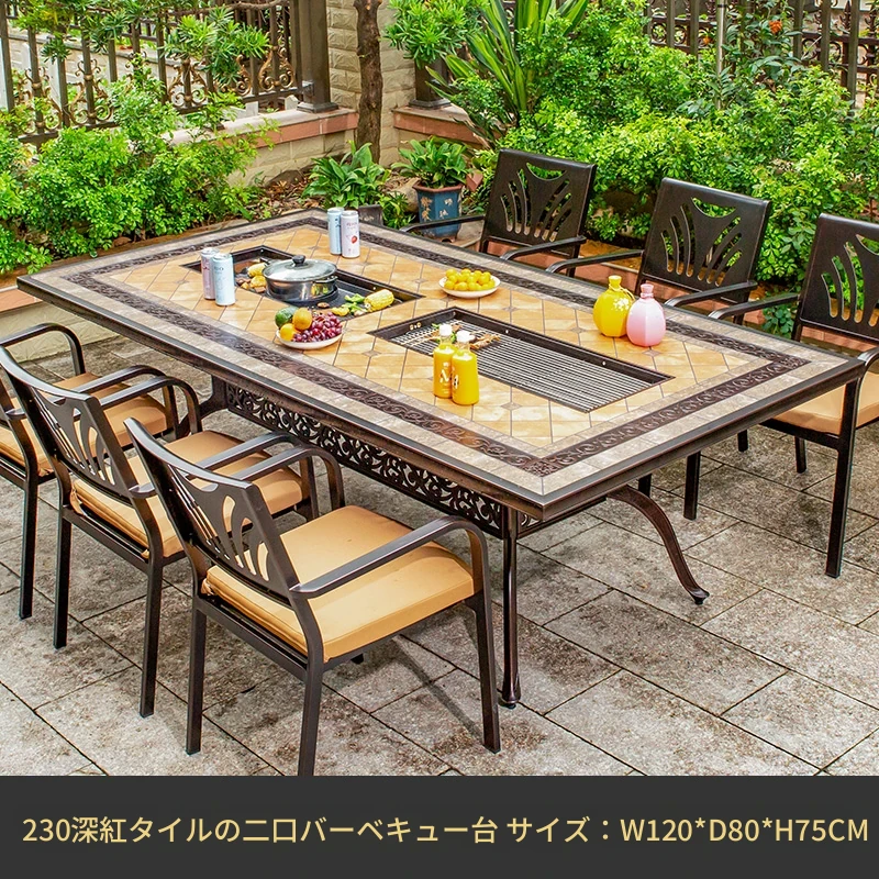 アウトドアバーベキュー用テーブルセット - リラックスできる庭のための大理石タイルテーブル。防水アルミ合金製の新中式デザインで、屋外でも安心して使用できます。家族や友人との楽しいひとときを演出します!