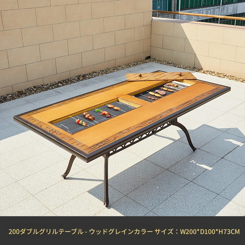200*100ダブルバーナー焼台-木目色(標準装備1電気焼き+1炭火焼) 200*100ダブルバーナー焼台-木目色(標準装備1電気焼き+1炭火焼)