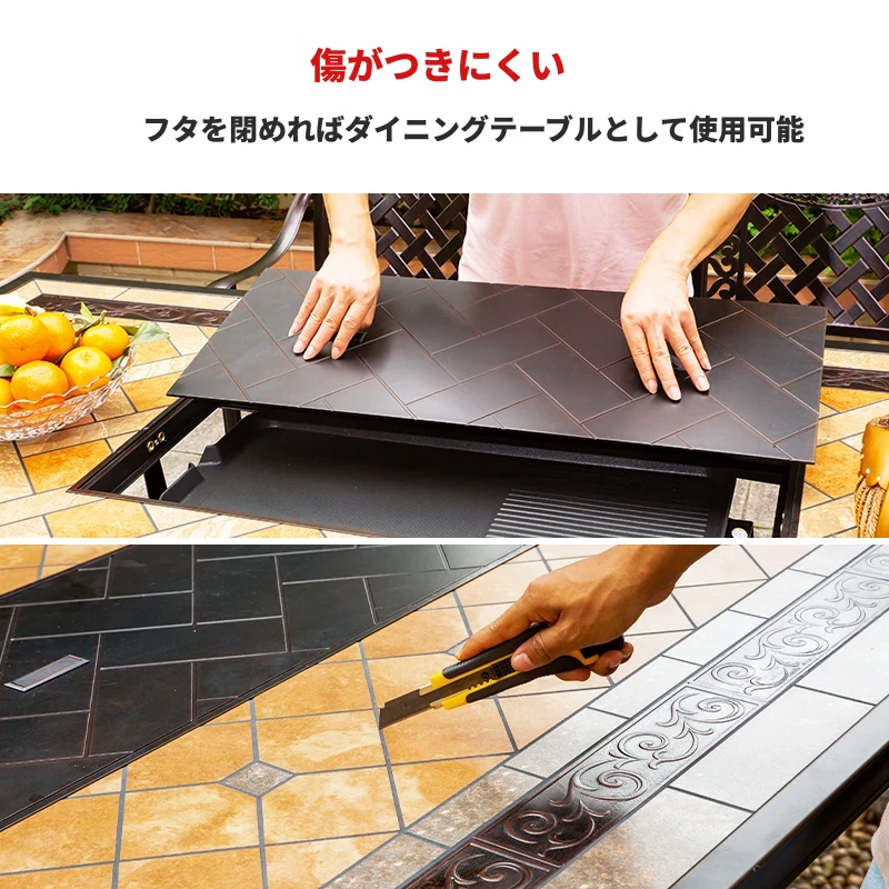 120木目タイル炭火焼テーブル 120木目タイル炭火焼テーブル