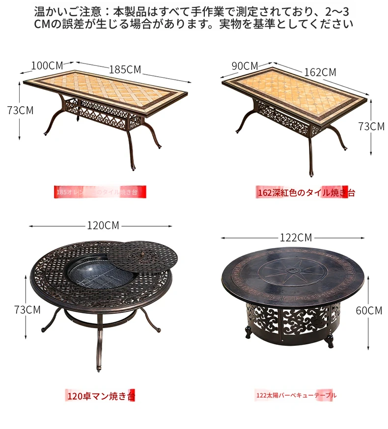 鋳アルミ122*60太陽焼きテーブル 鋳アルミ122*60太陽焼きテーブル