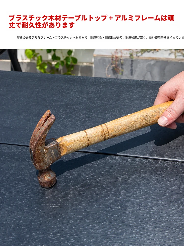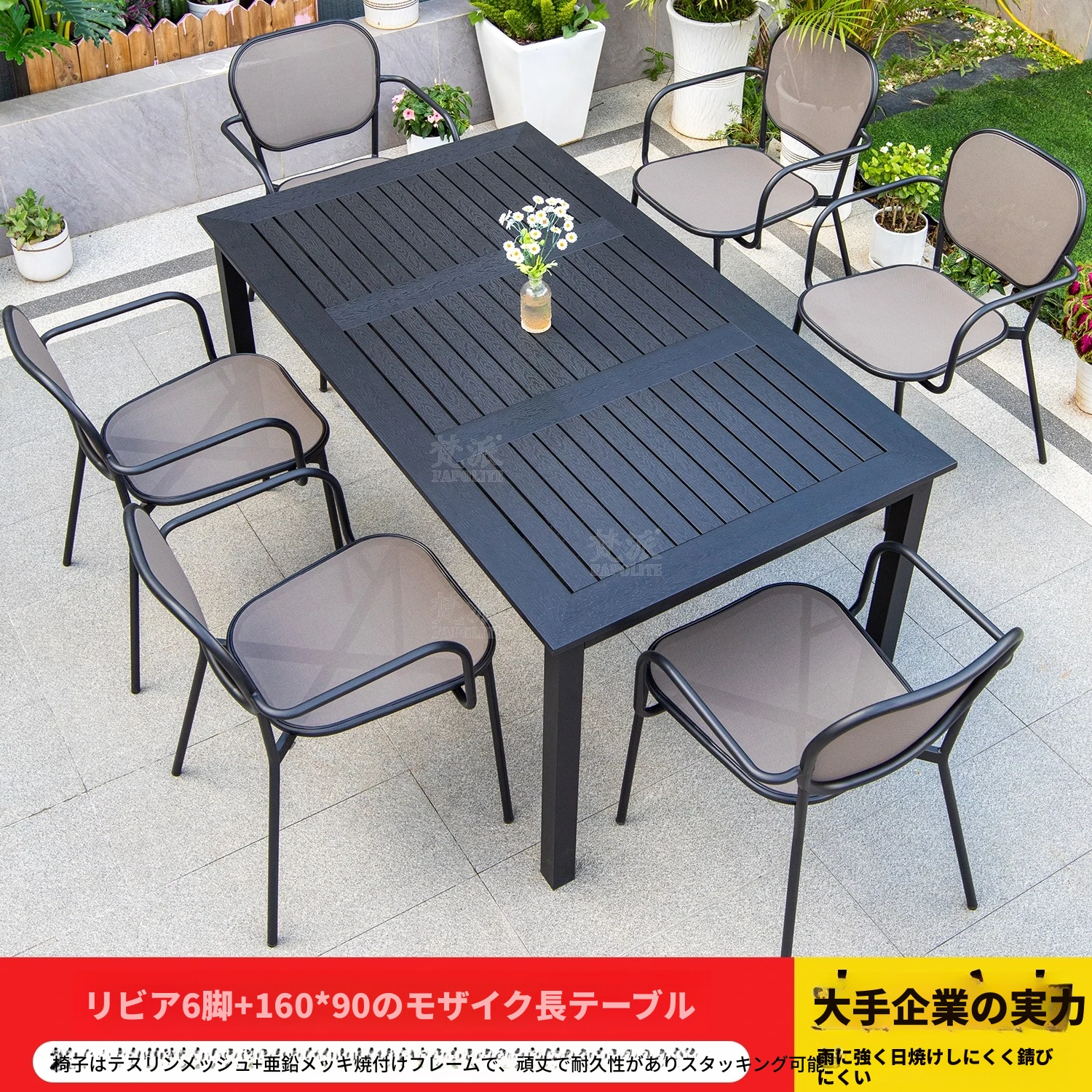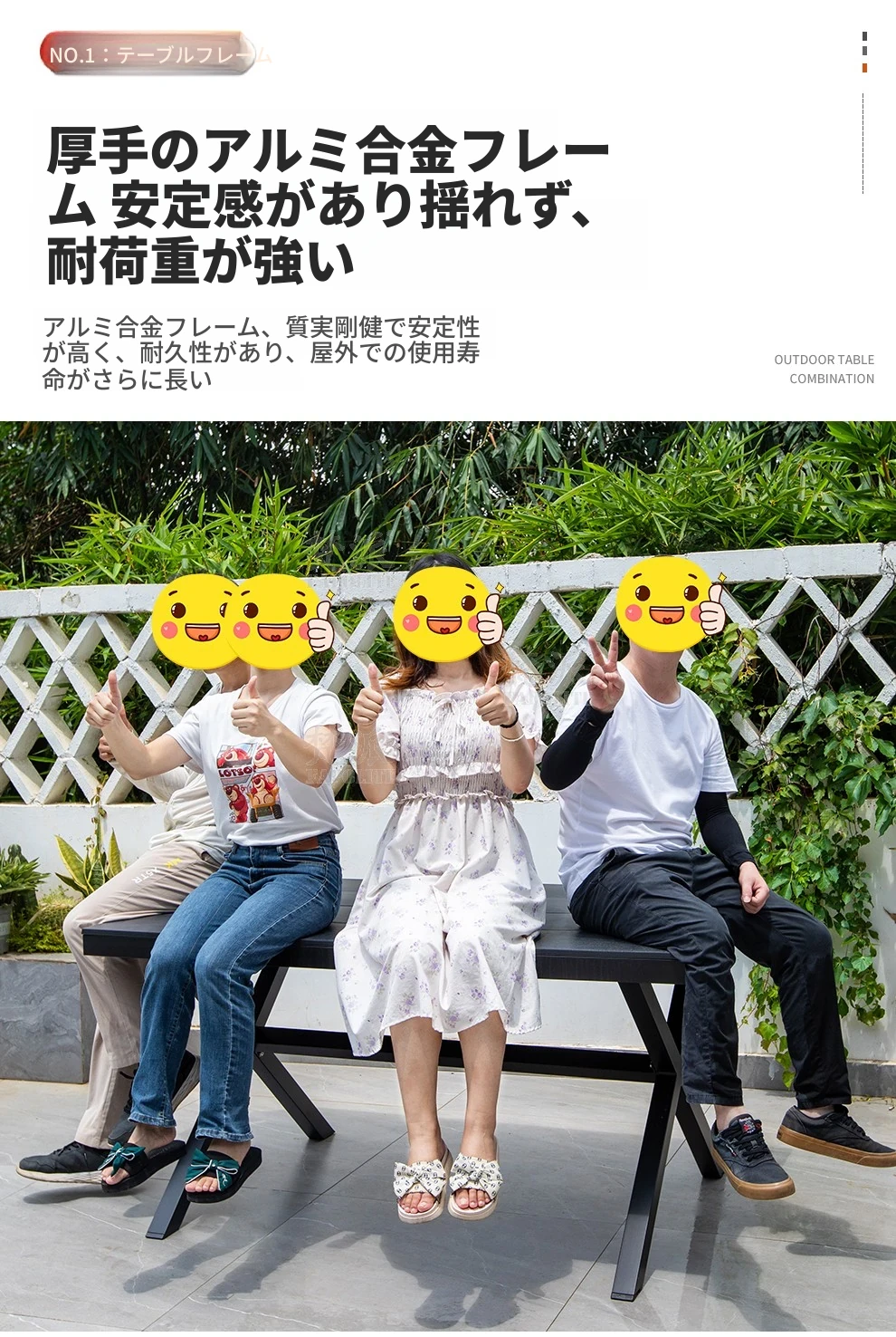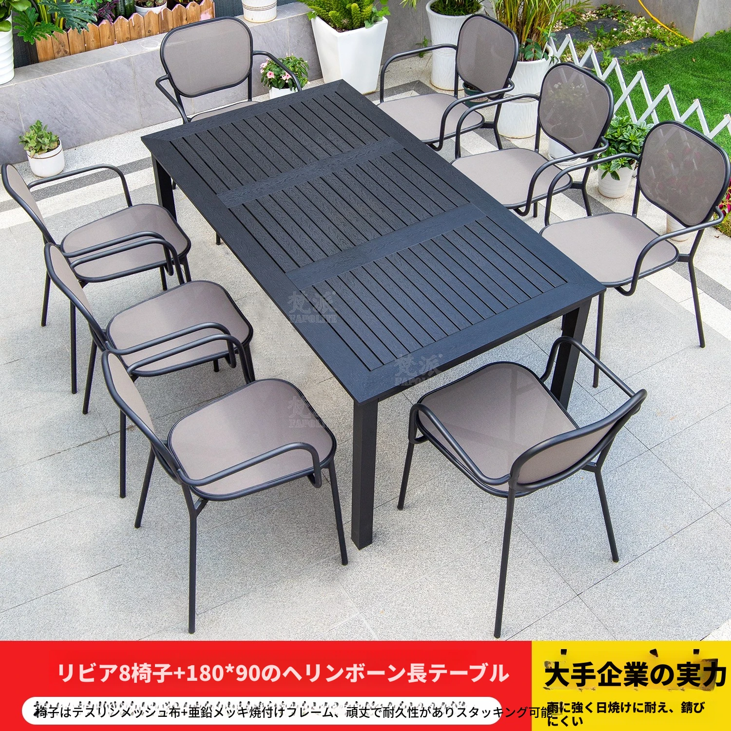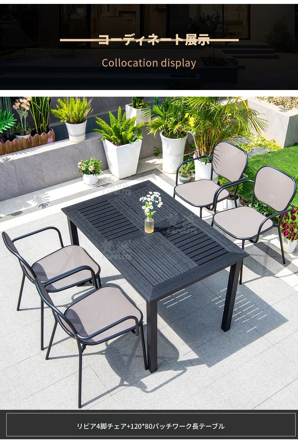 アウトドア用プラスチック木材テーブルセット!耐久性に優れたカーボンスチール製のアイアンテーブルと背もたれ付きの商業用椅子の組み合わせ。防水仕様で、どんな天候でも安心してご使用いただけます。おしゃれで機能的なデザインで、庭やバルコニーに最適です!
