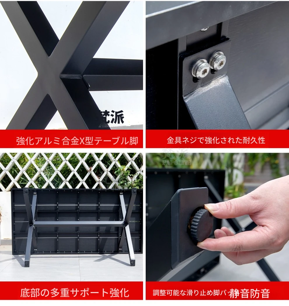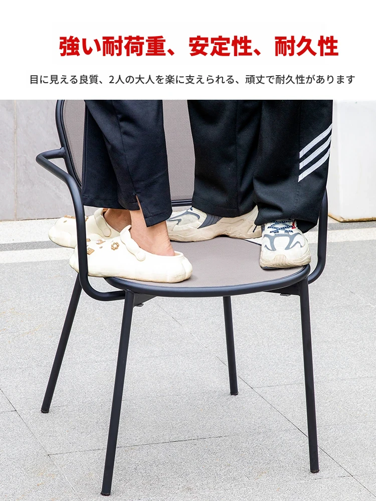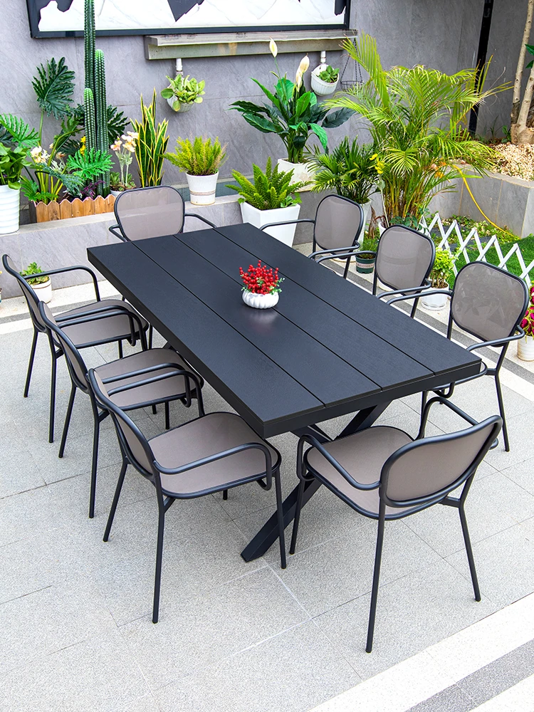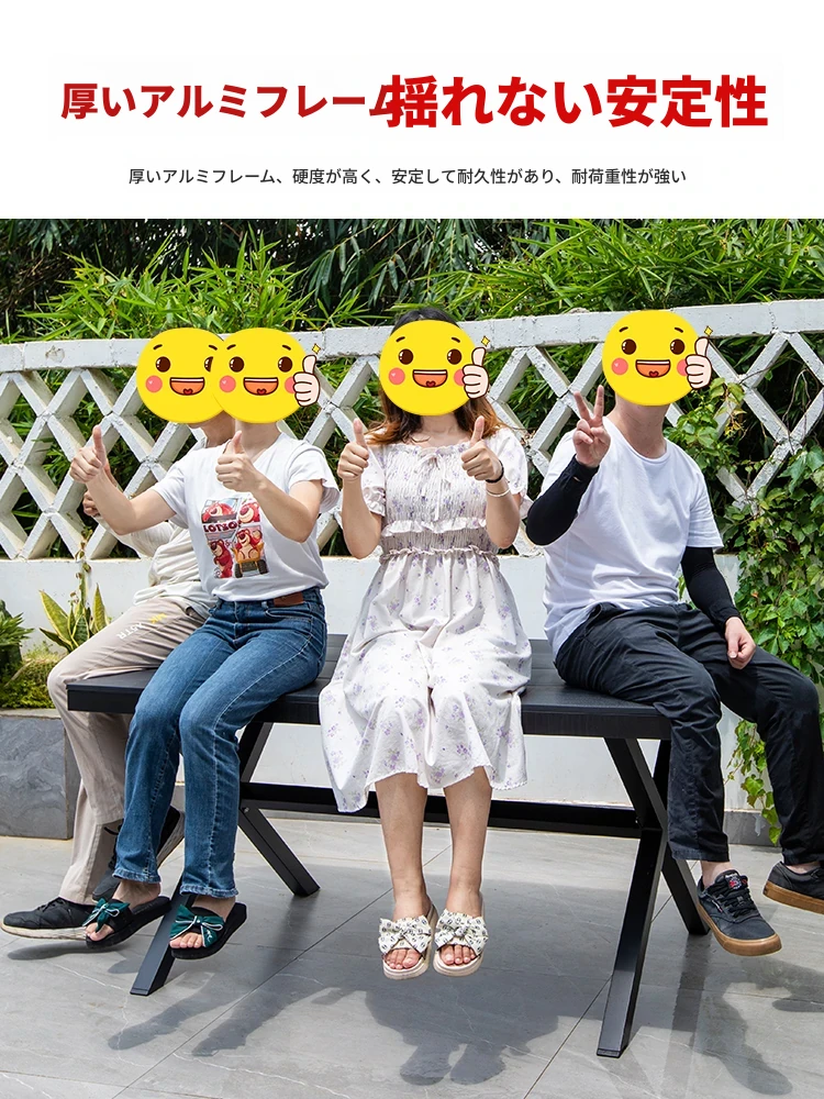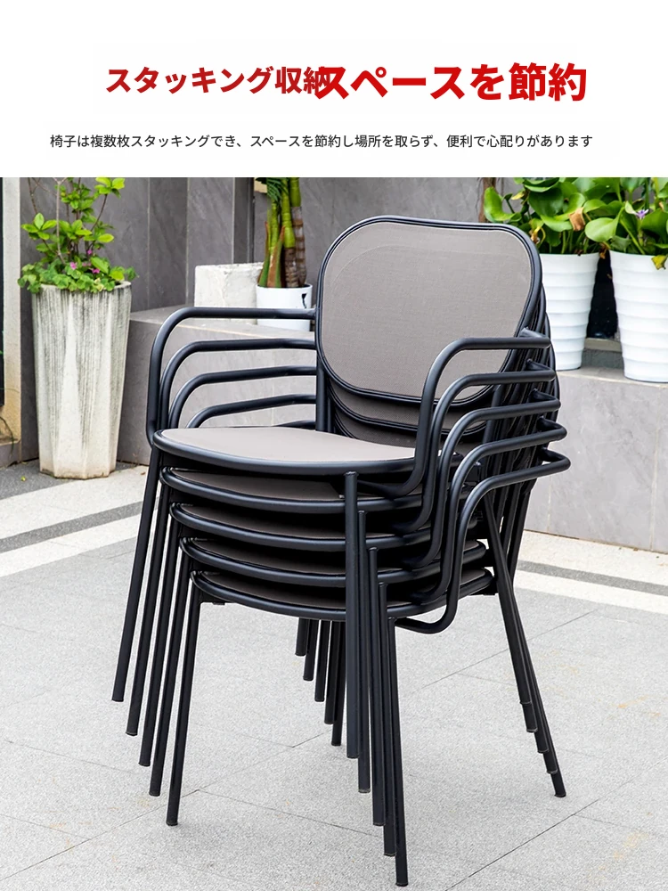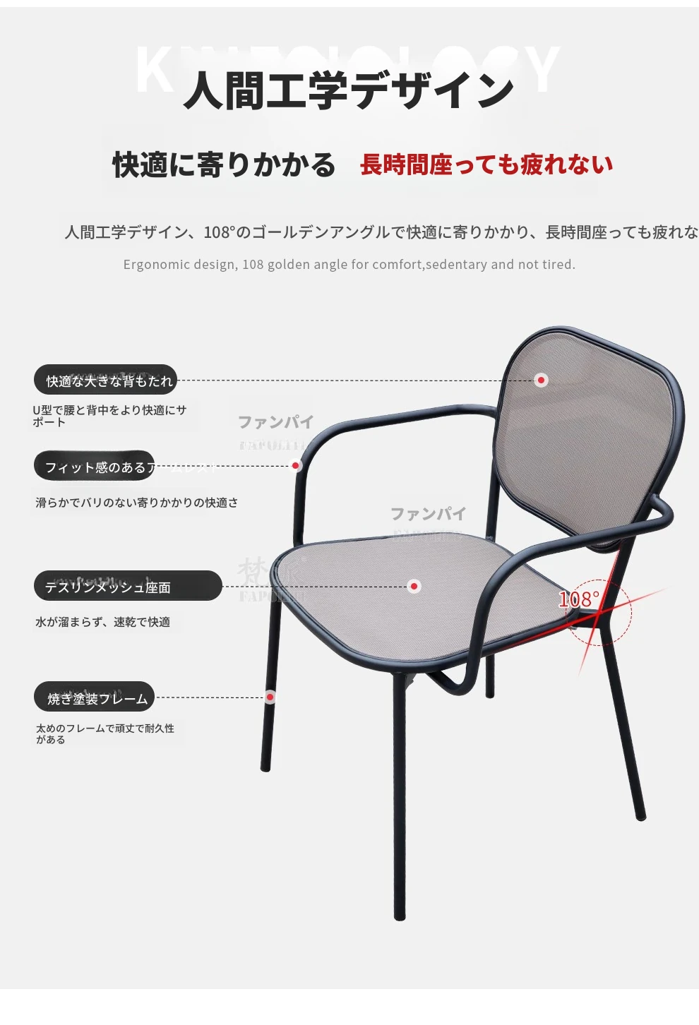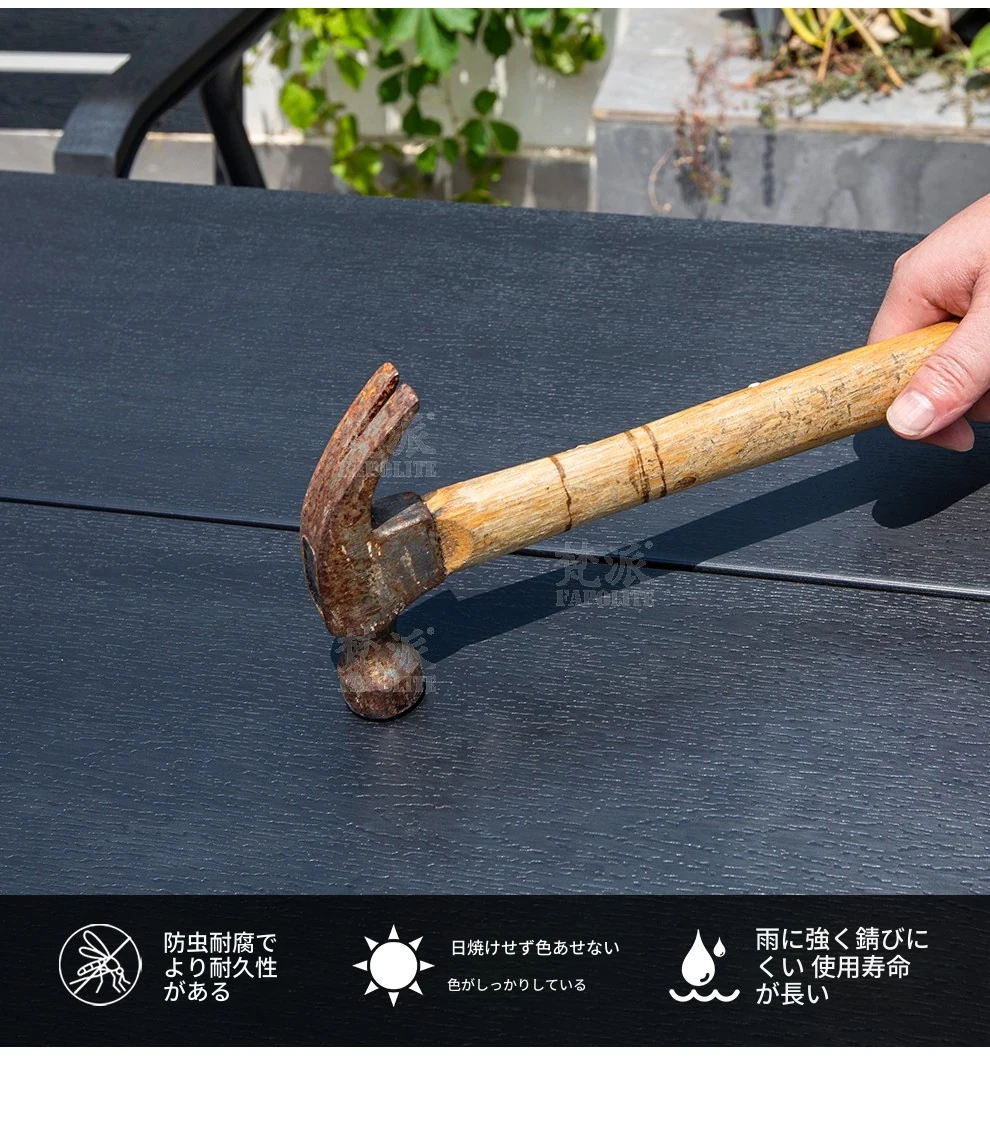 アウトドア用プラスチック木材テーブルセット!耐久性に優れたカーボンスチール製のアイアンテーブルと背もたれ付きの商業用椅子の組み合わせ。防水仕様で、どんな天候でも安心してご使用いただけます。おしゃれで機能的なデザインで、庭やバルコニーに最適です!