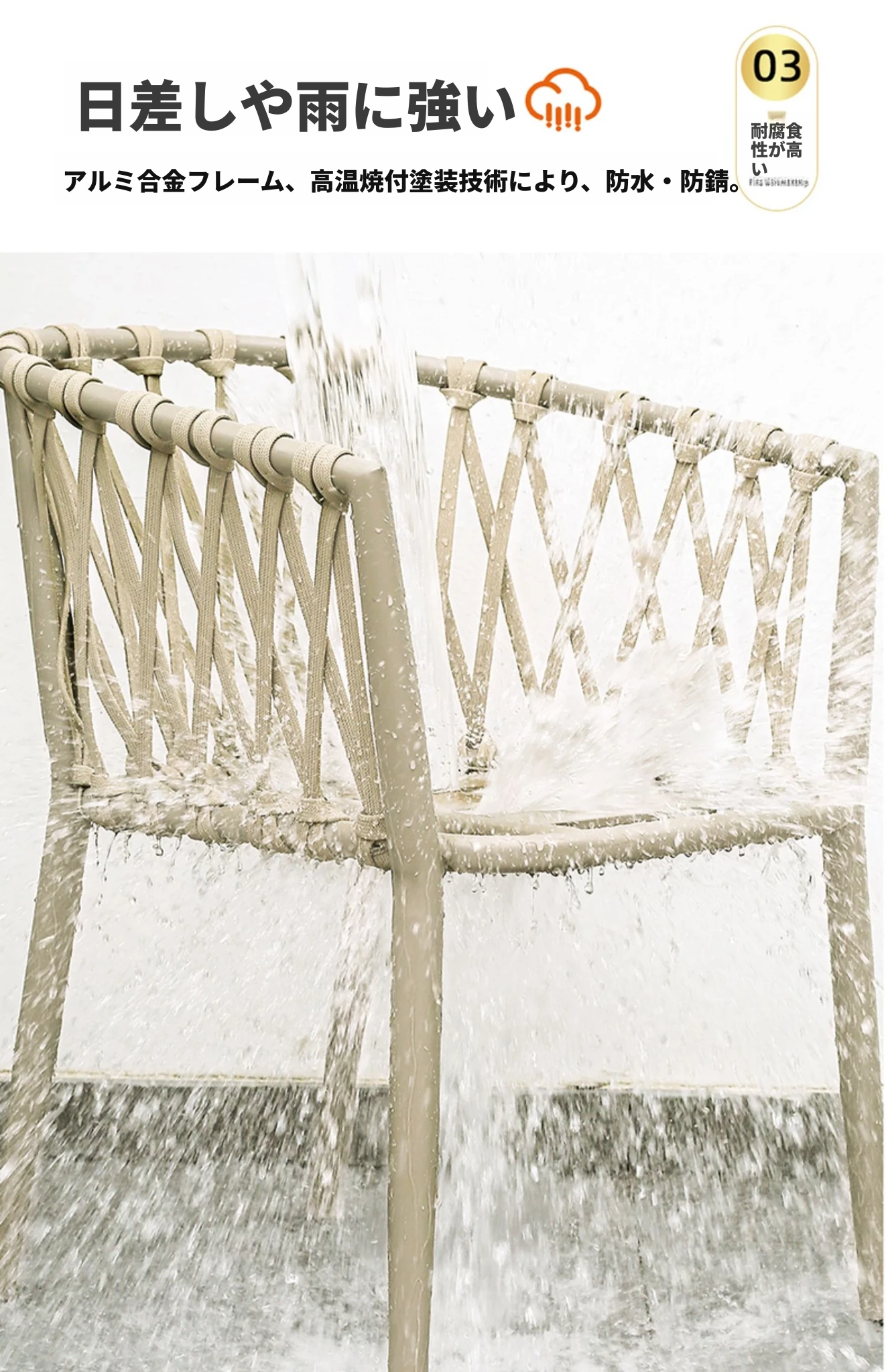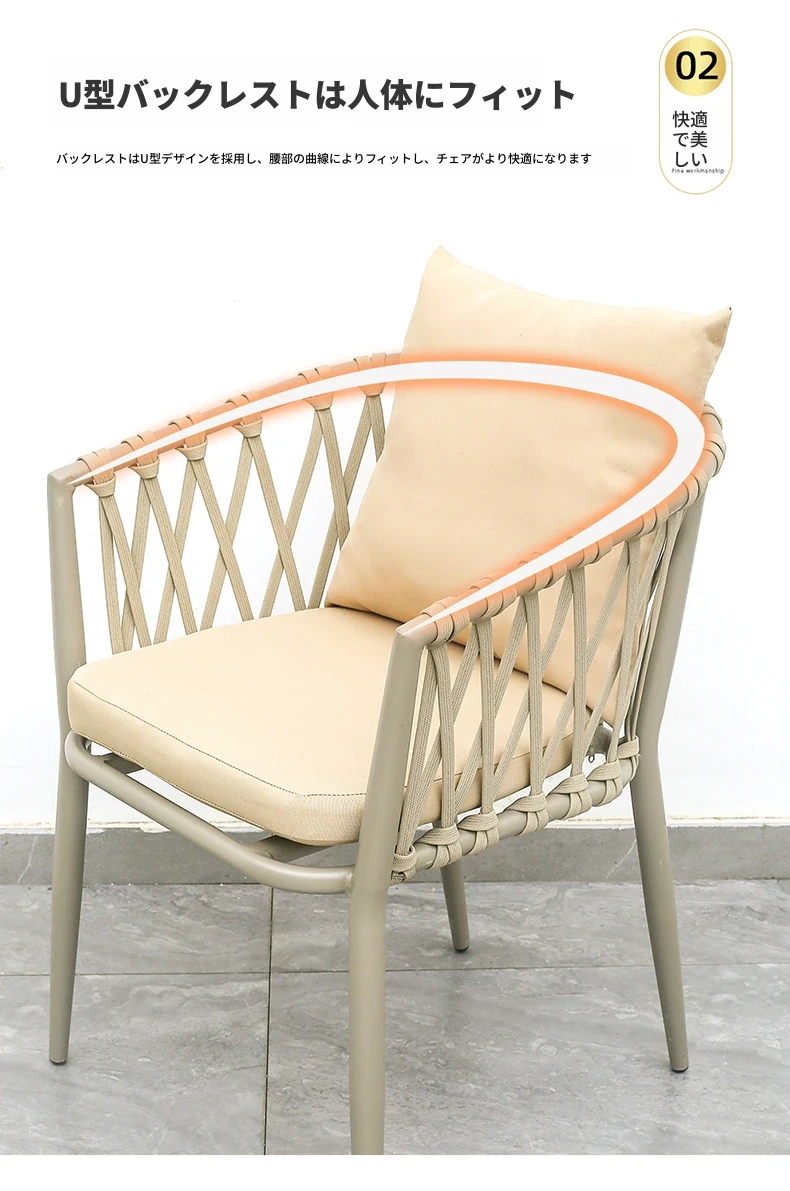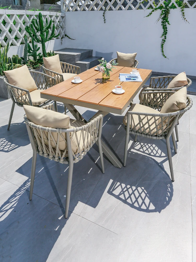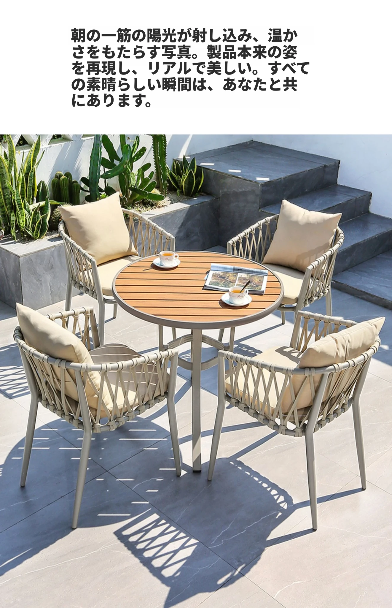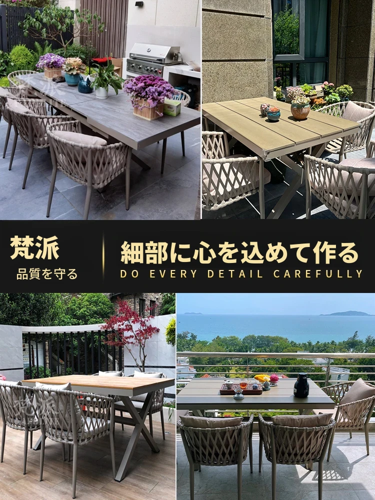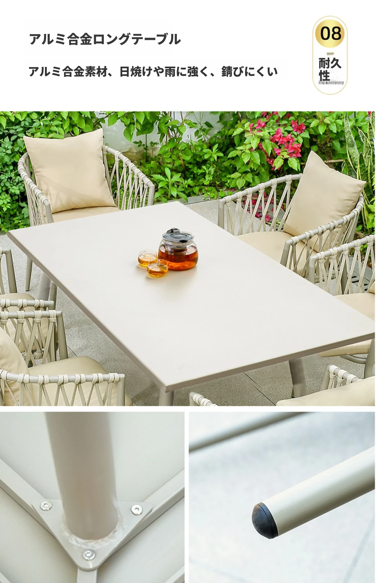 防水機能付き庭用アウトドアテーブルセット!リラックスできる民宿テラス用、ロープ編みの長方形プラスチック木製ダイニングテーブルとラタンチェアのコンビネーションで、快適な時間をお楽しみください!