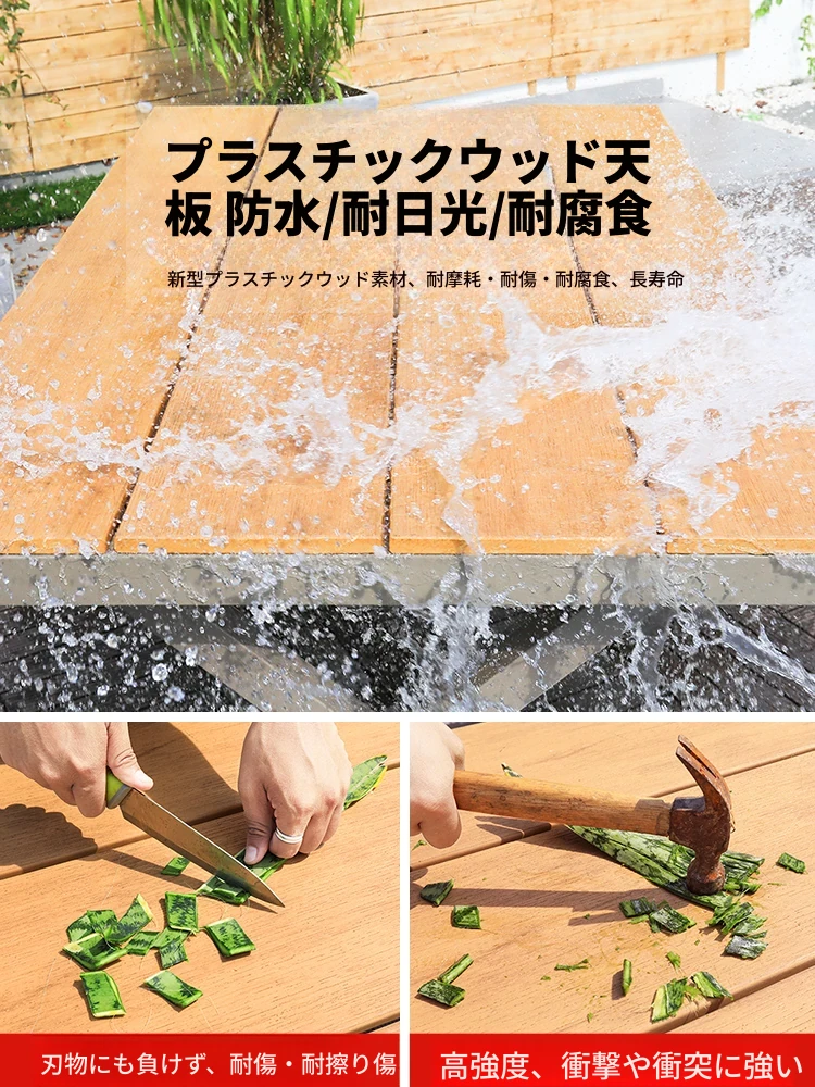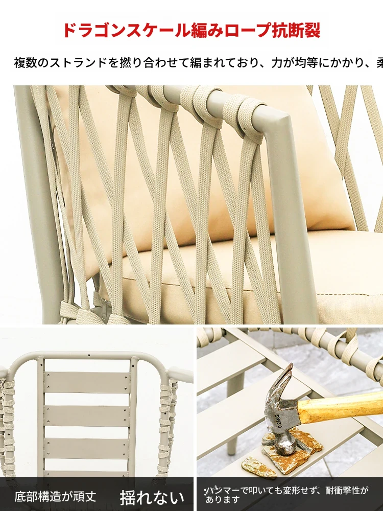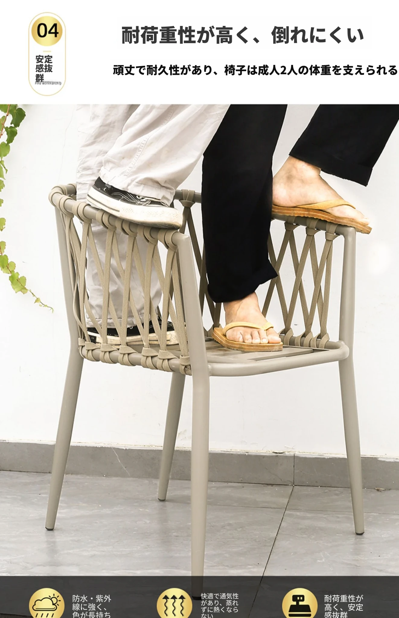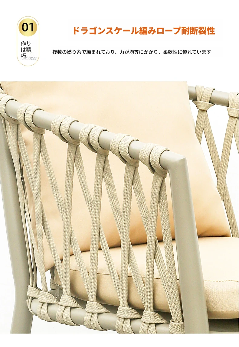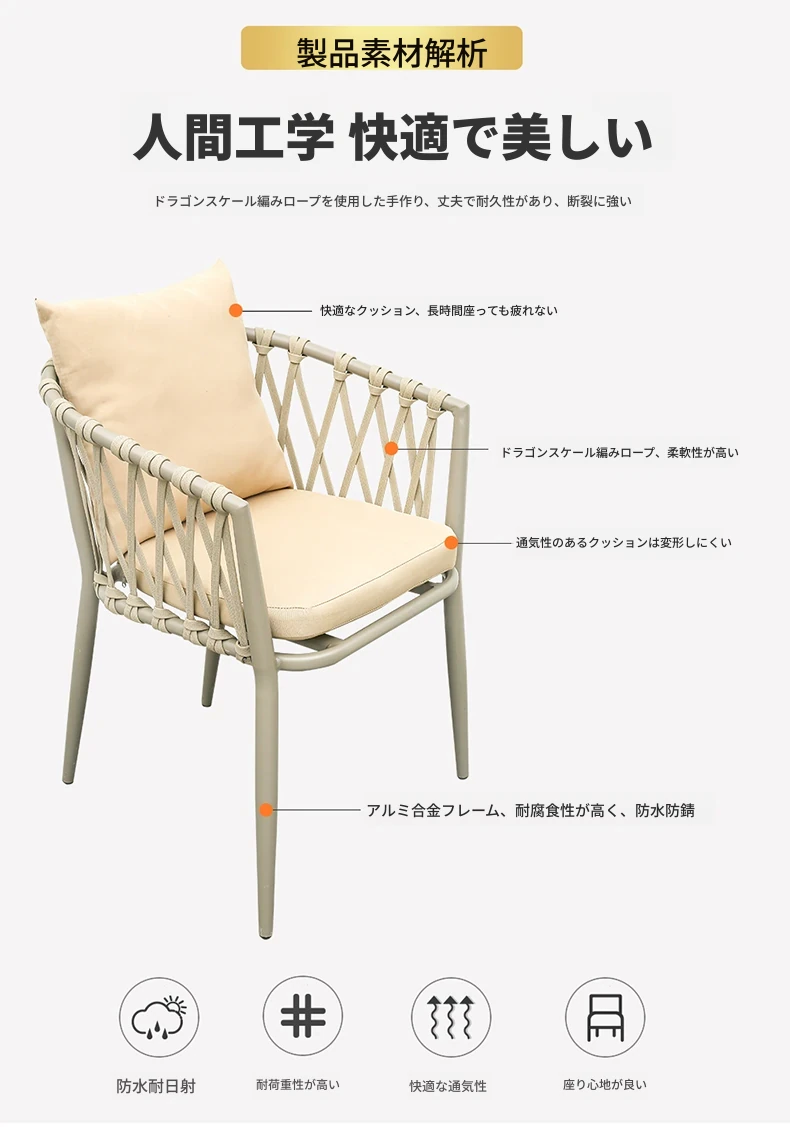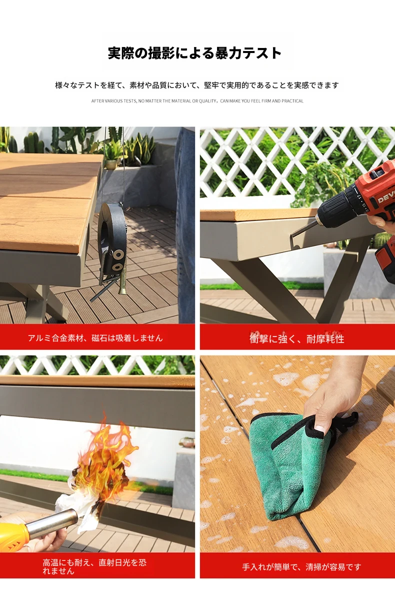防水機能付き庭用アウトドアテーブルセット!リラックスできる民宿テラス用、ロープ編みの長方形プラスチック木製ダイニングテーブルとラタンチェアのコンビネーションで、快適な時間をお楽しみください!