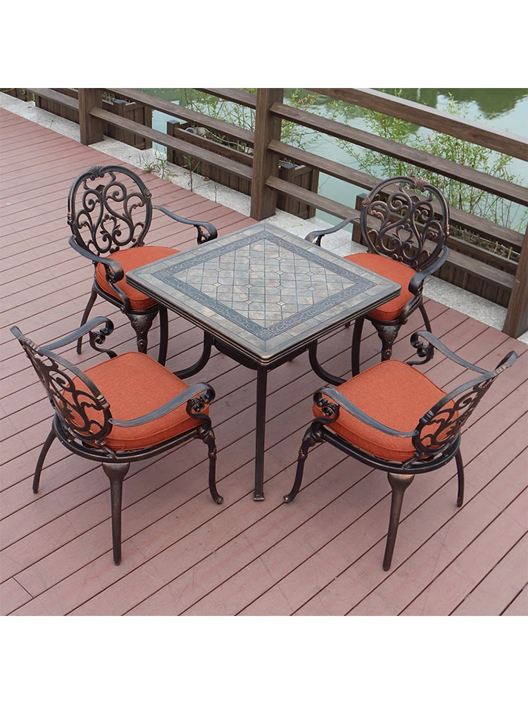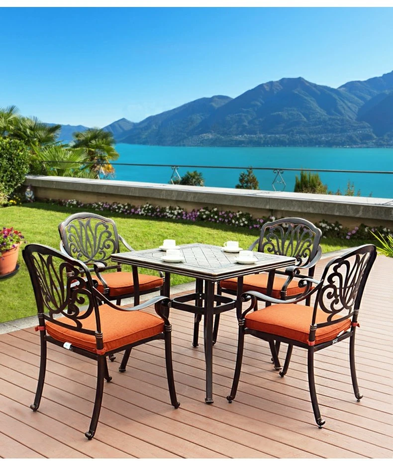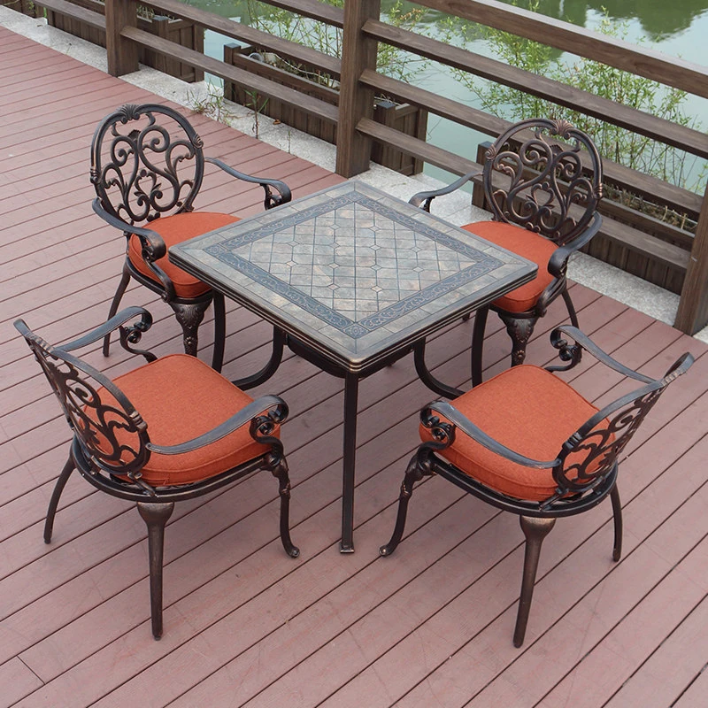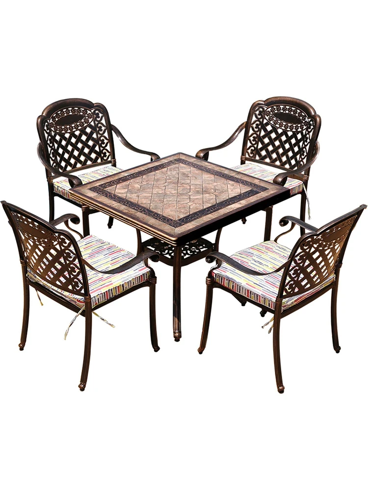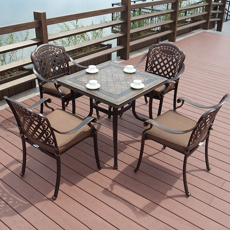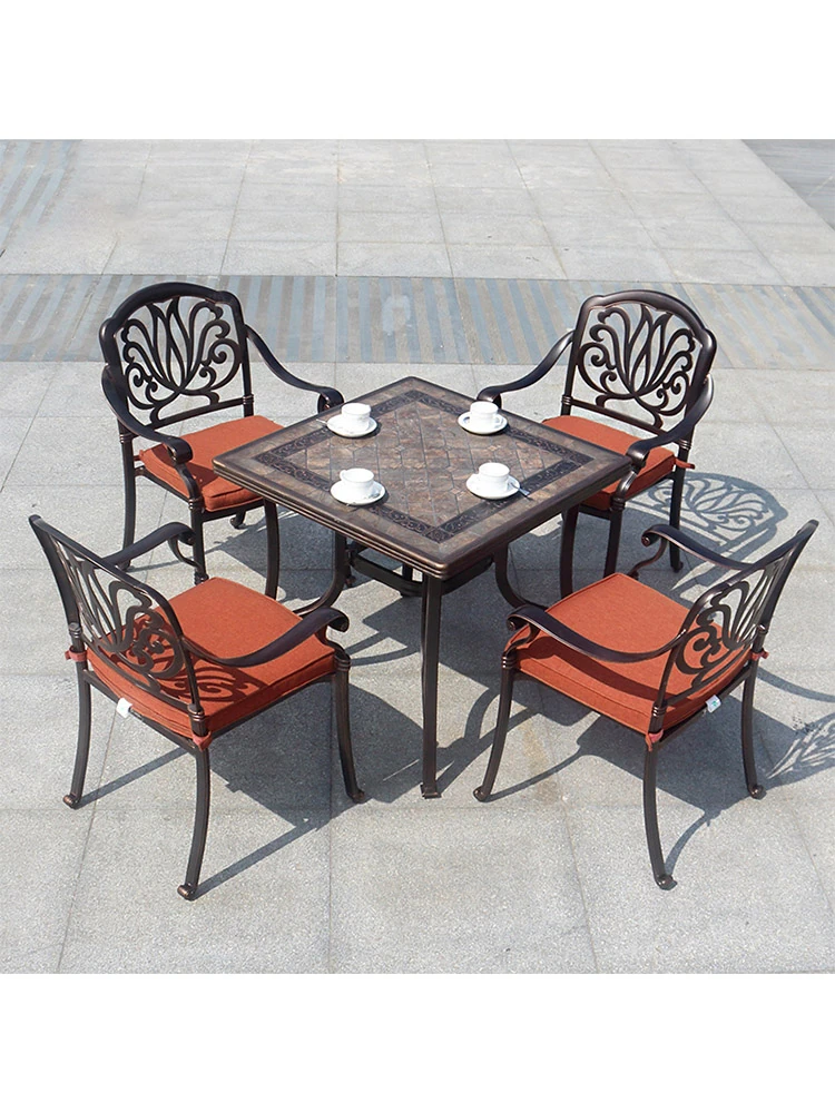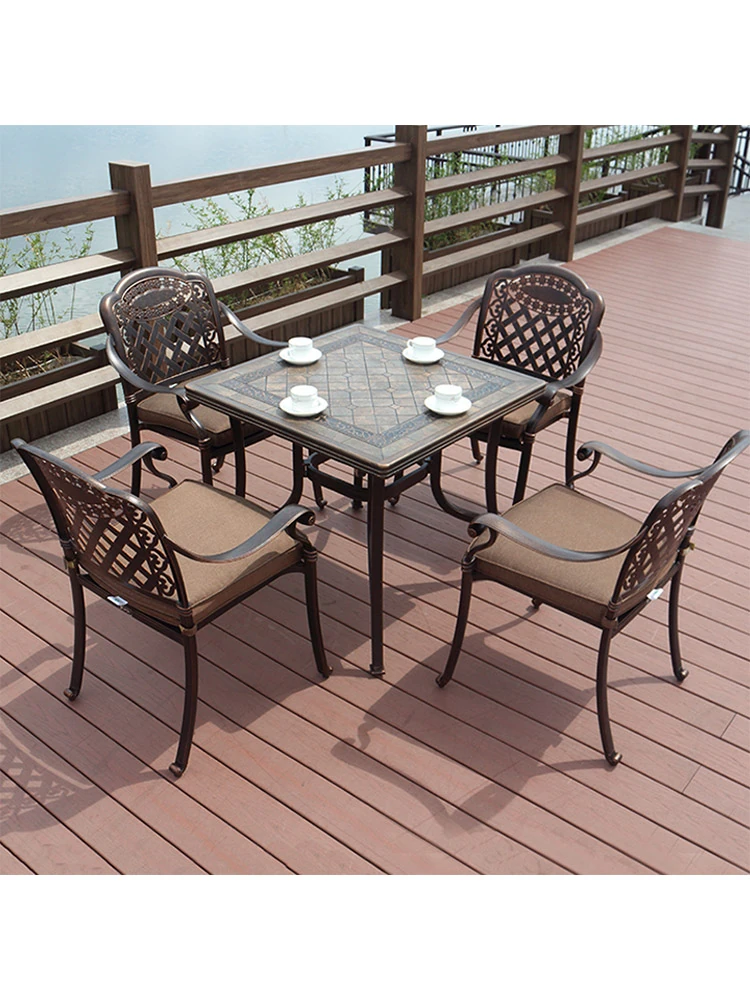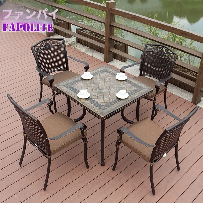ヴァンパイアルミニウム製屋外家具セット - おしゃれなバルコニーテーブルとチェア、リラクゼーションに最適な大理石デザインの5点セット、庭やテラスにぴったり!