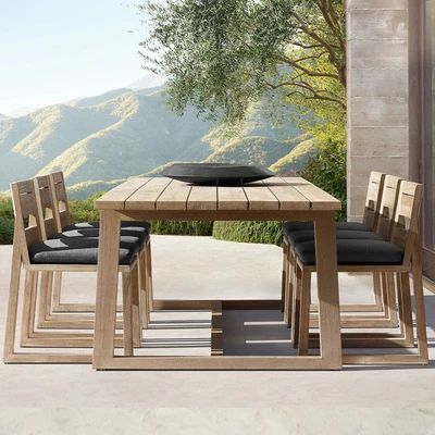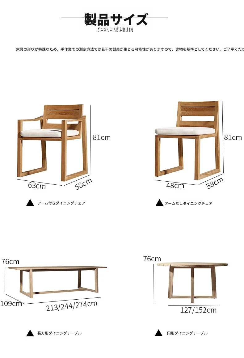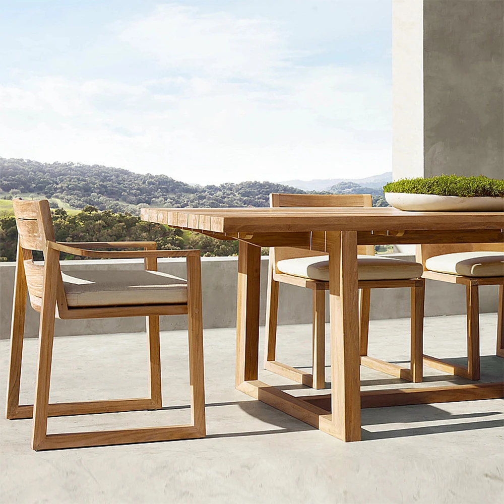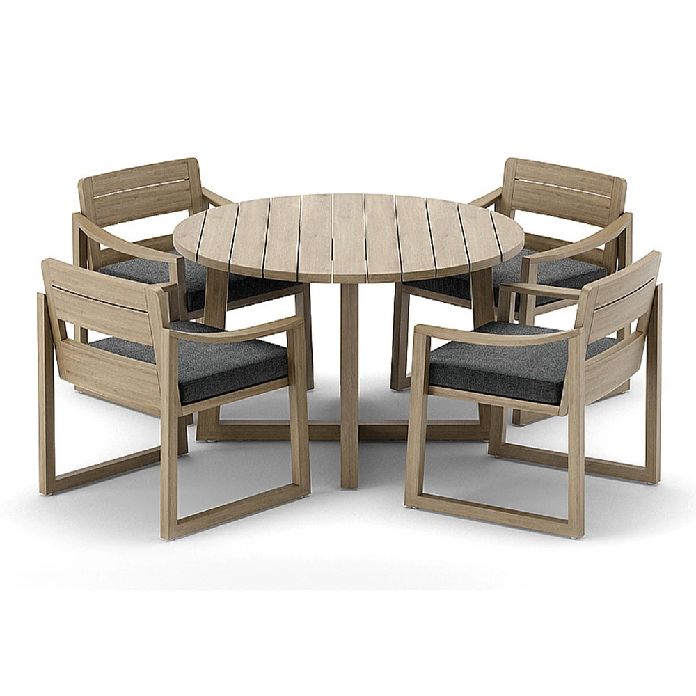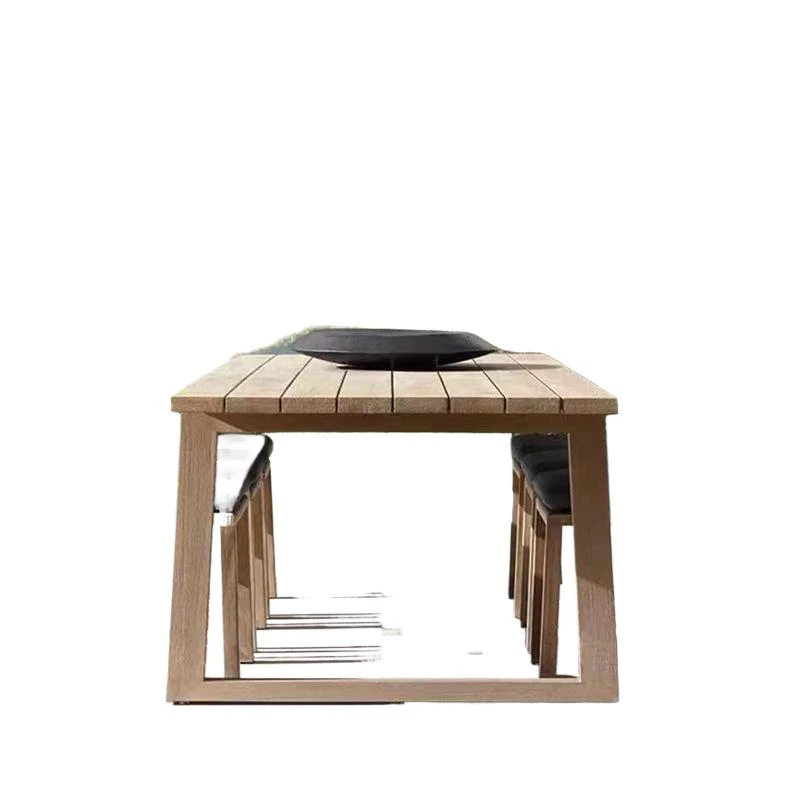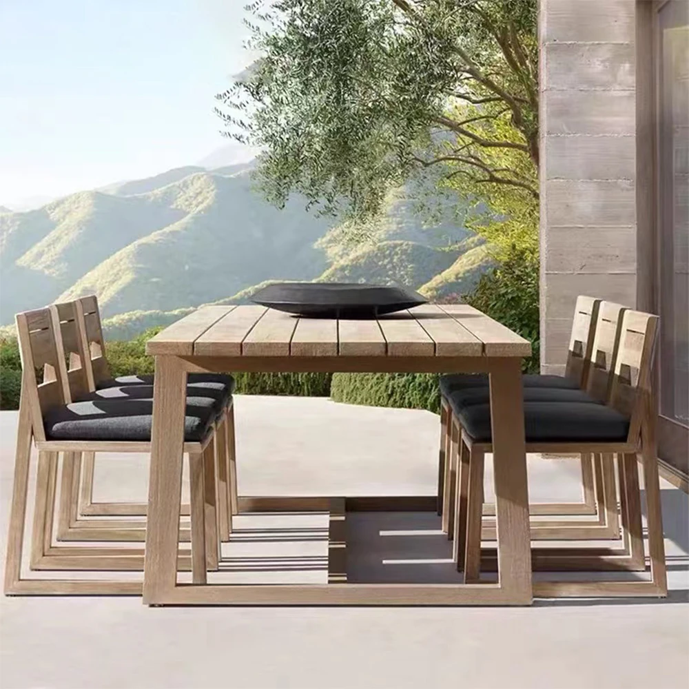 ヴァンパイ・アウトドア・チーク材テーブルセット|庭や別荘にぴったりの屋外ガーデン家具|耐腐食性の天然木製ダイニングテーブルと椅子で、くつろぎのひとときを演出!