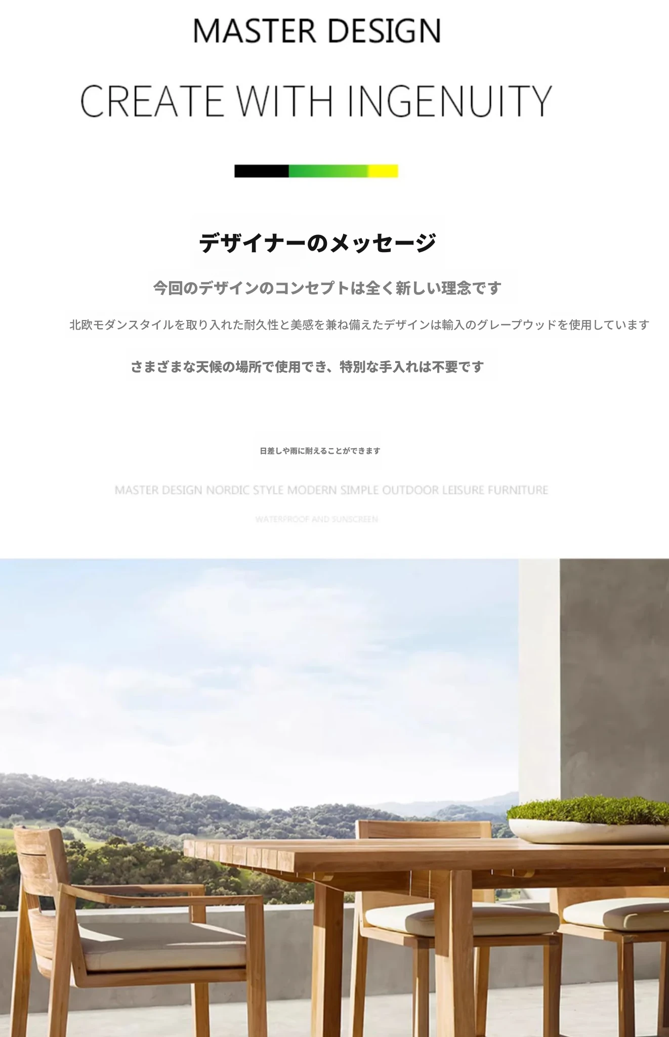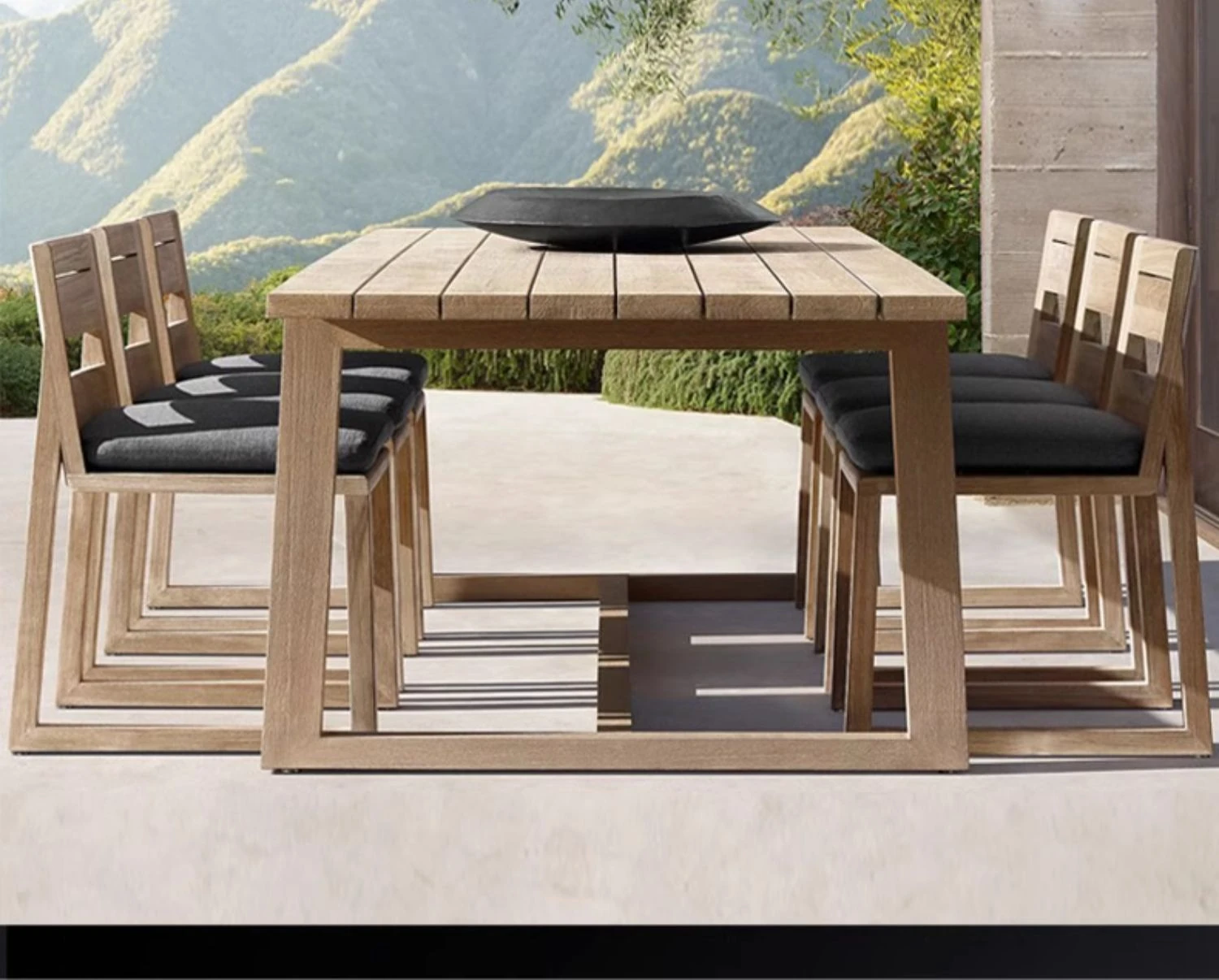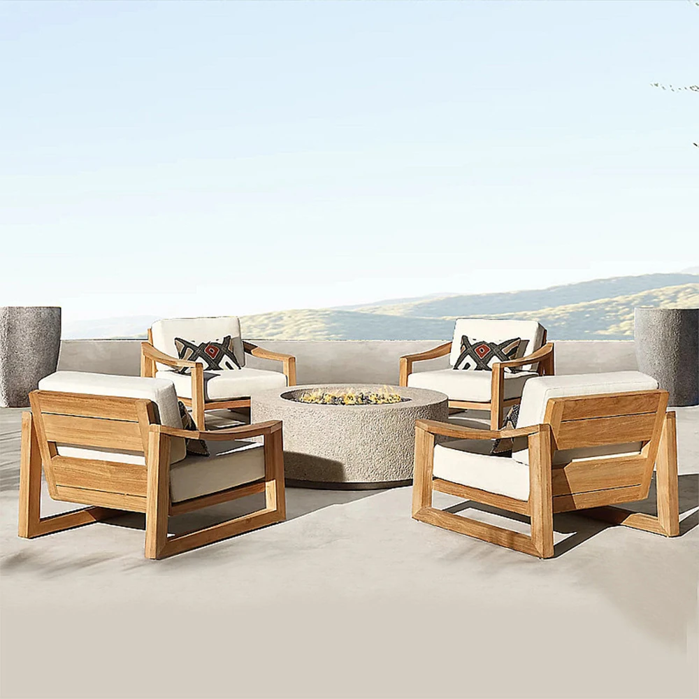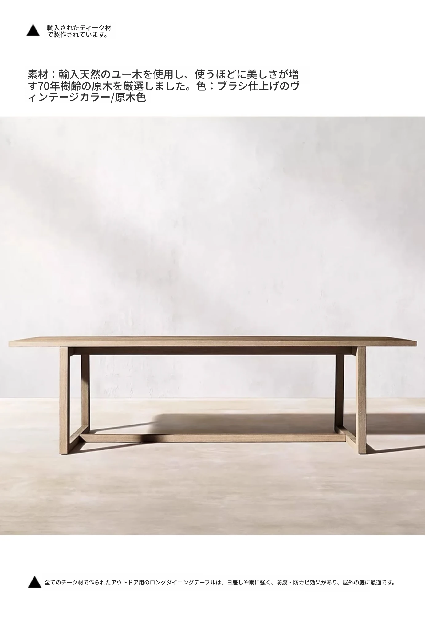 ヴァンパイ・アウトドア・チーク材テーブルセット|庭や別荘にぴったりの屋外ガーデン家具|耐腐食性の天然木製ダイニングテーブルと椅子で、くつろぎのひとときを演出!