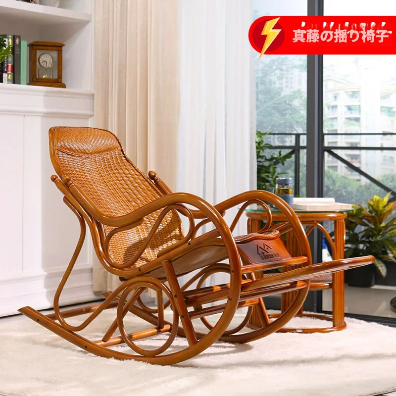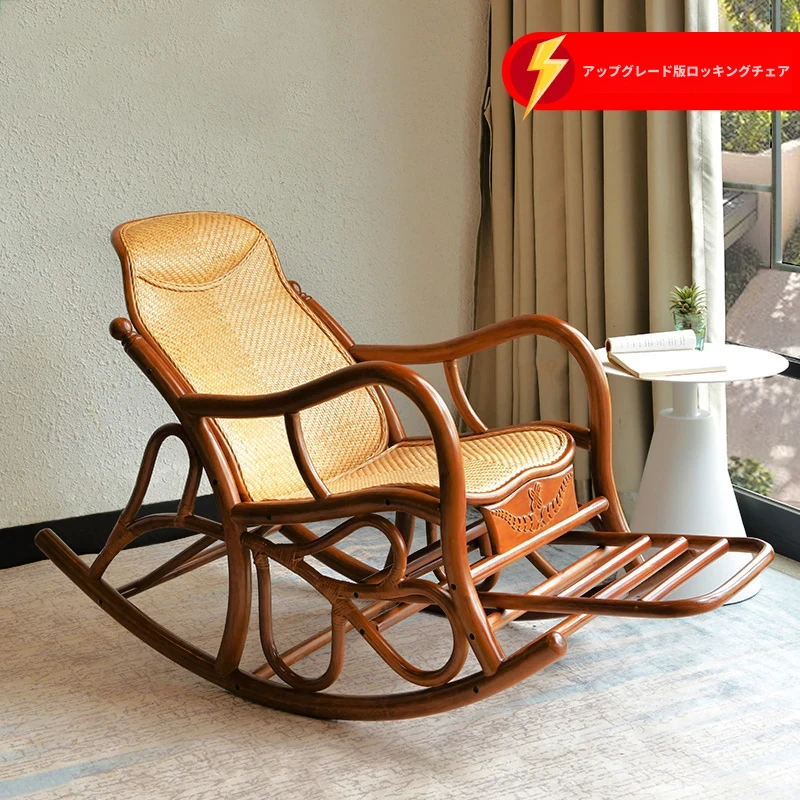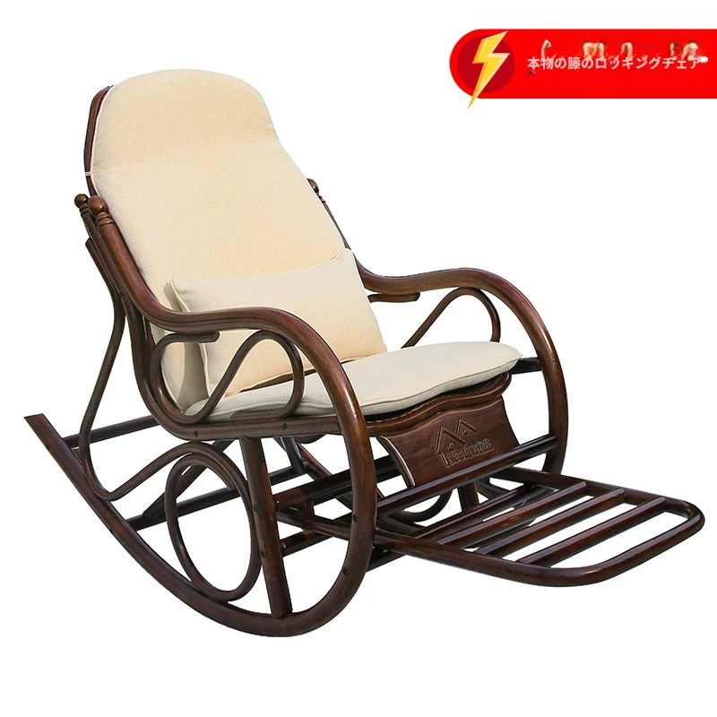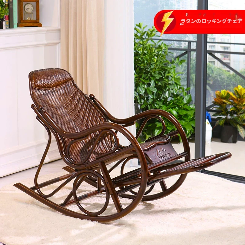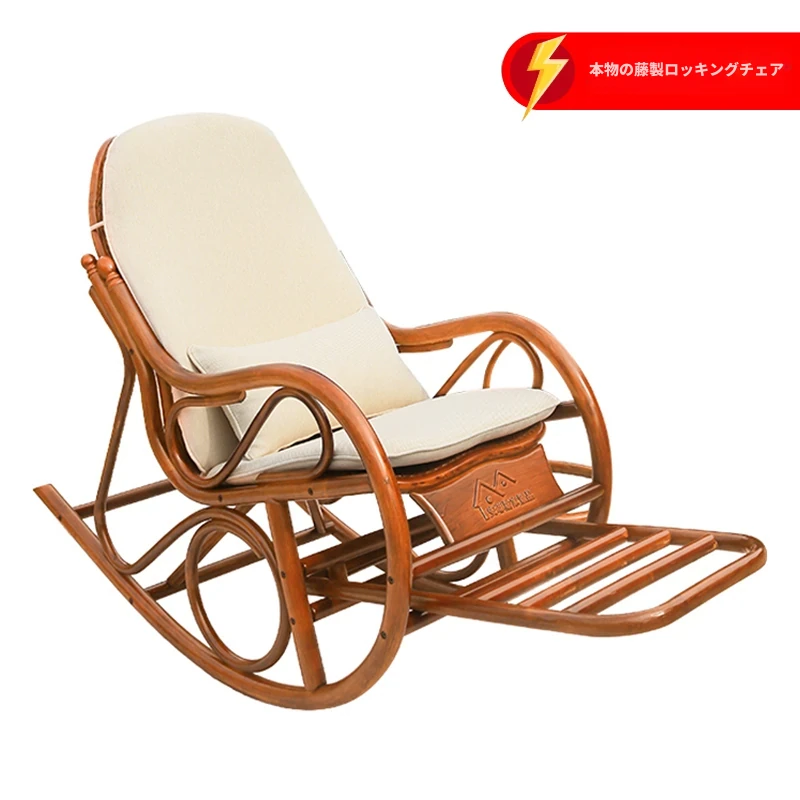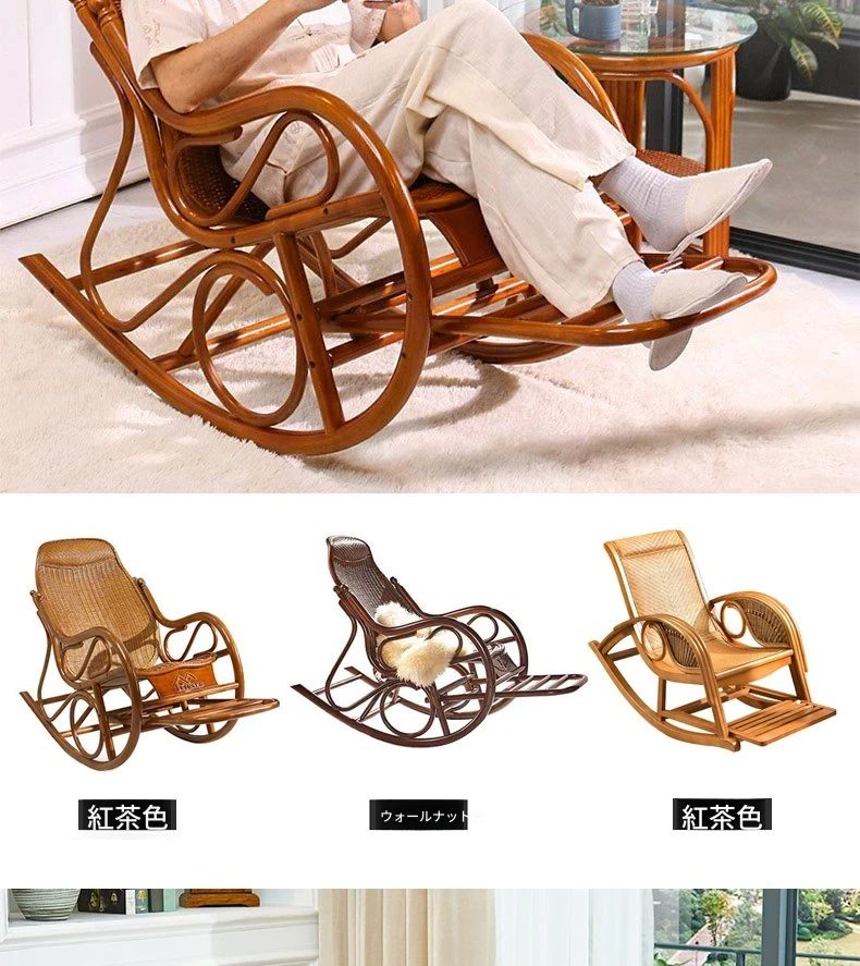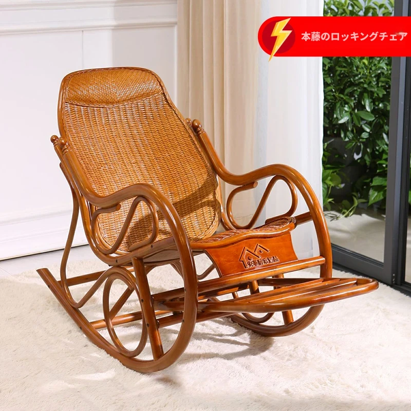 紅茶色のロッキングチェア【本藤】-クッション付き