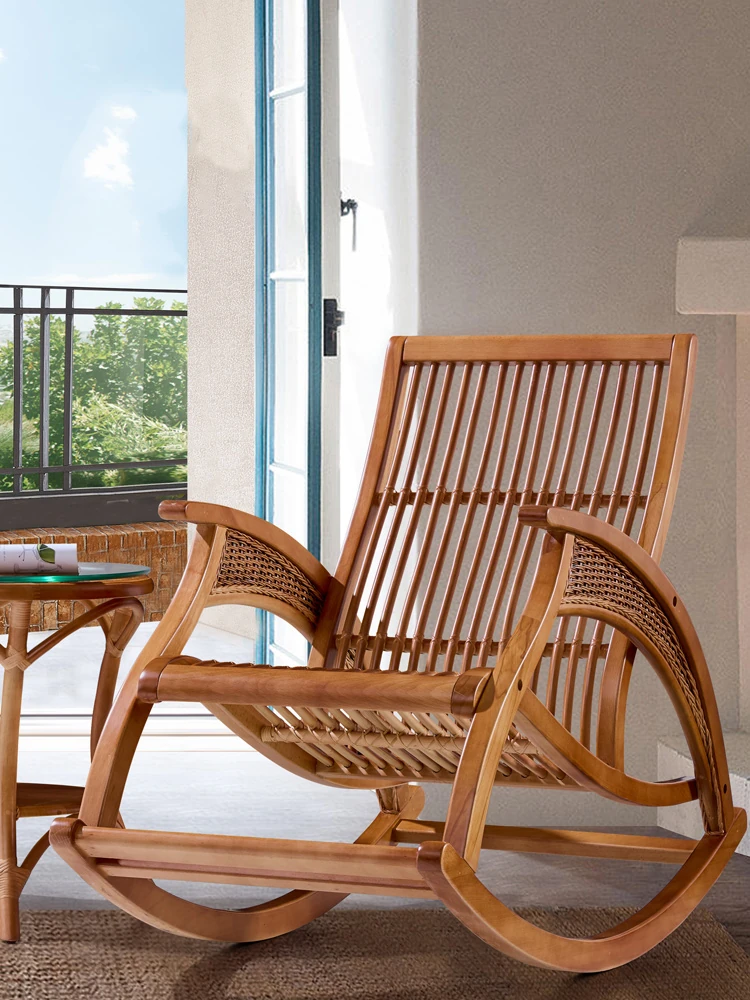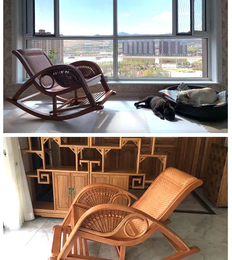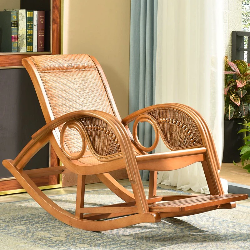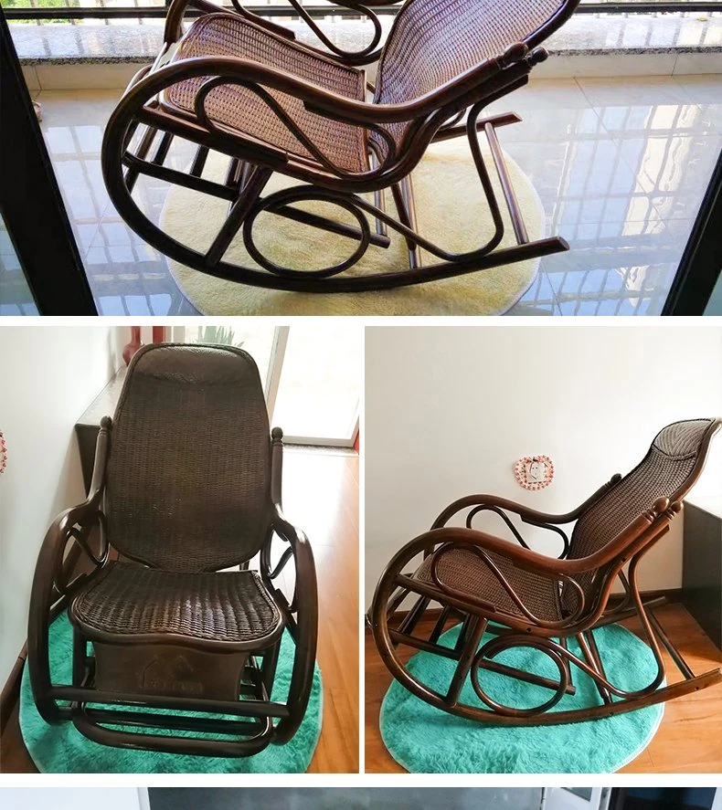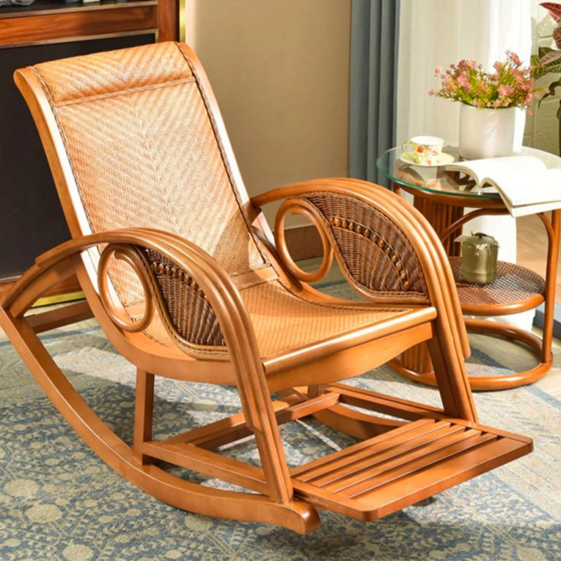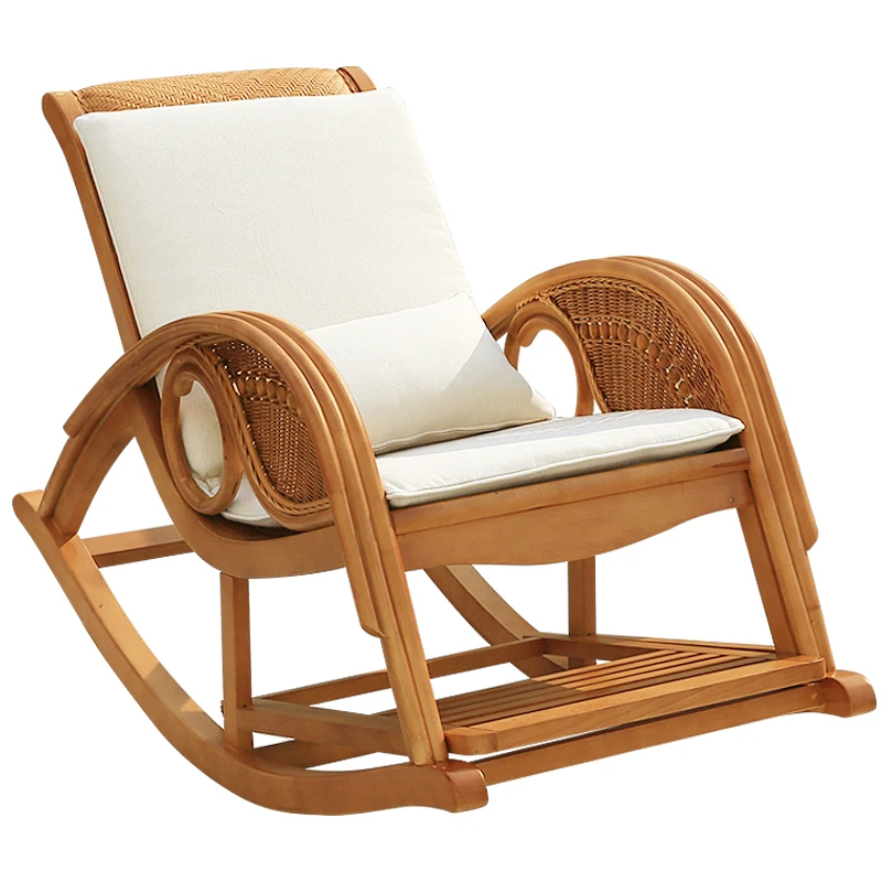 紅茶色のロッキングチェア【本藤】-クッション付き