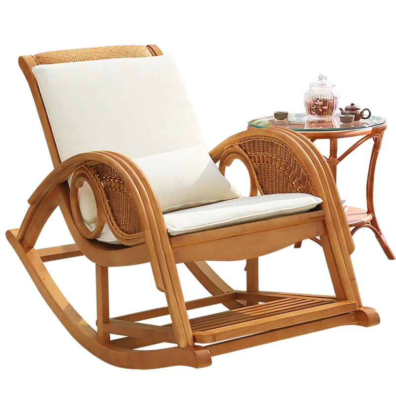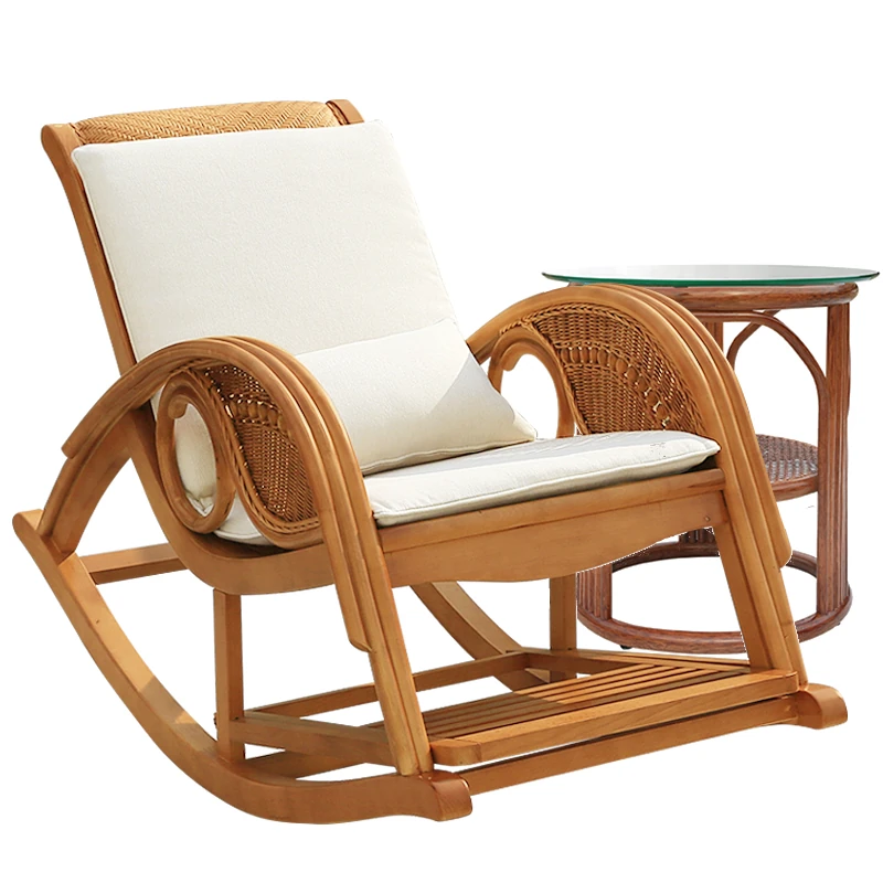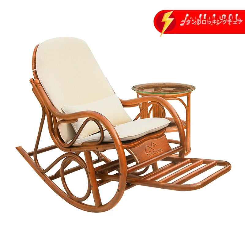 紅茶色のロッキングチェア【本藤+輸入ブナフレーム】+1号テーブル-クッション付き