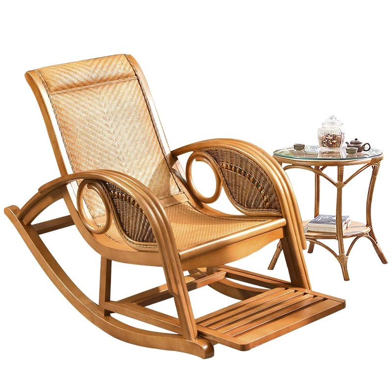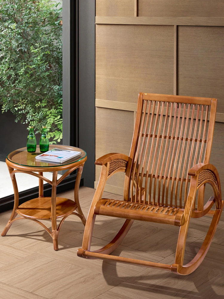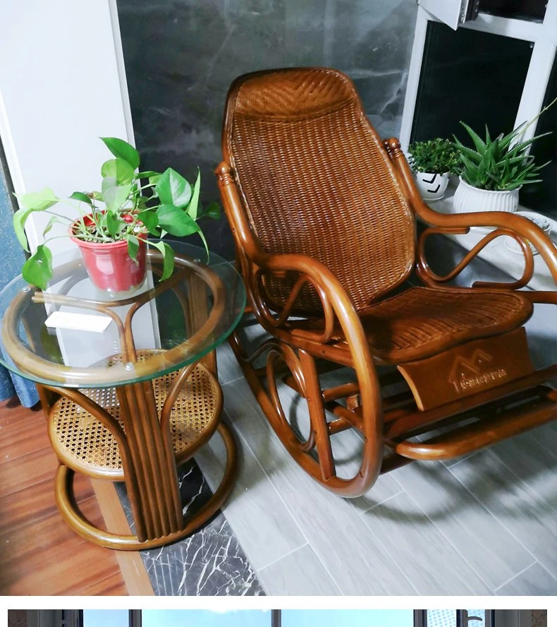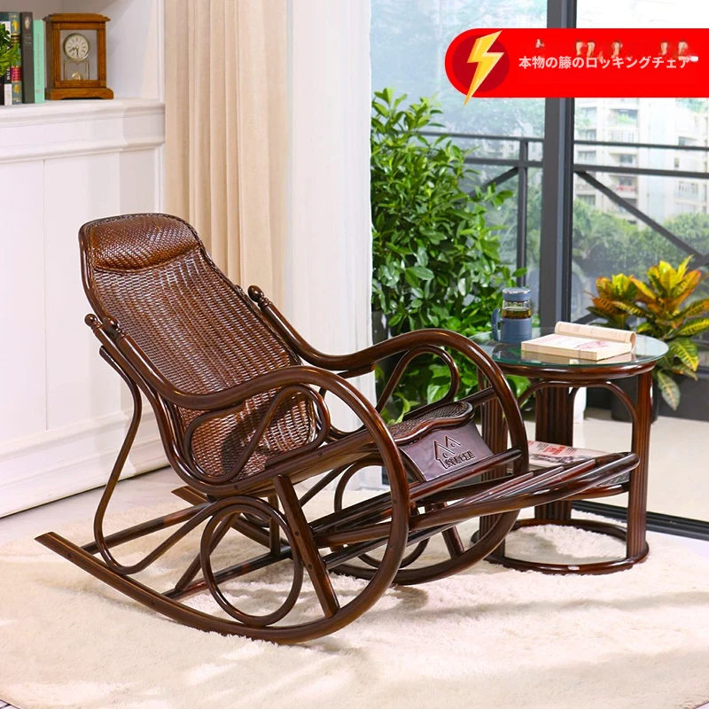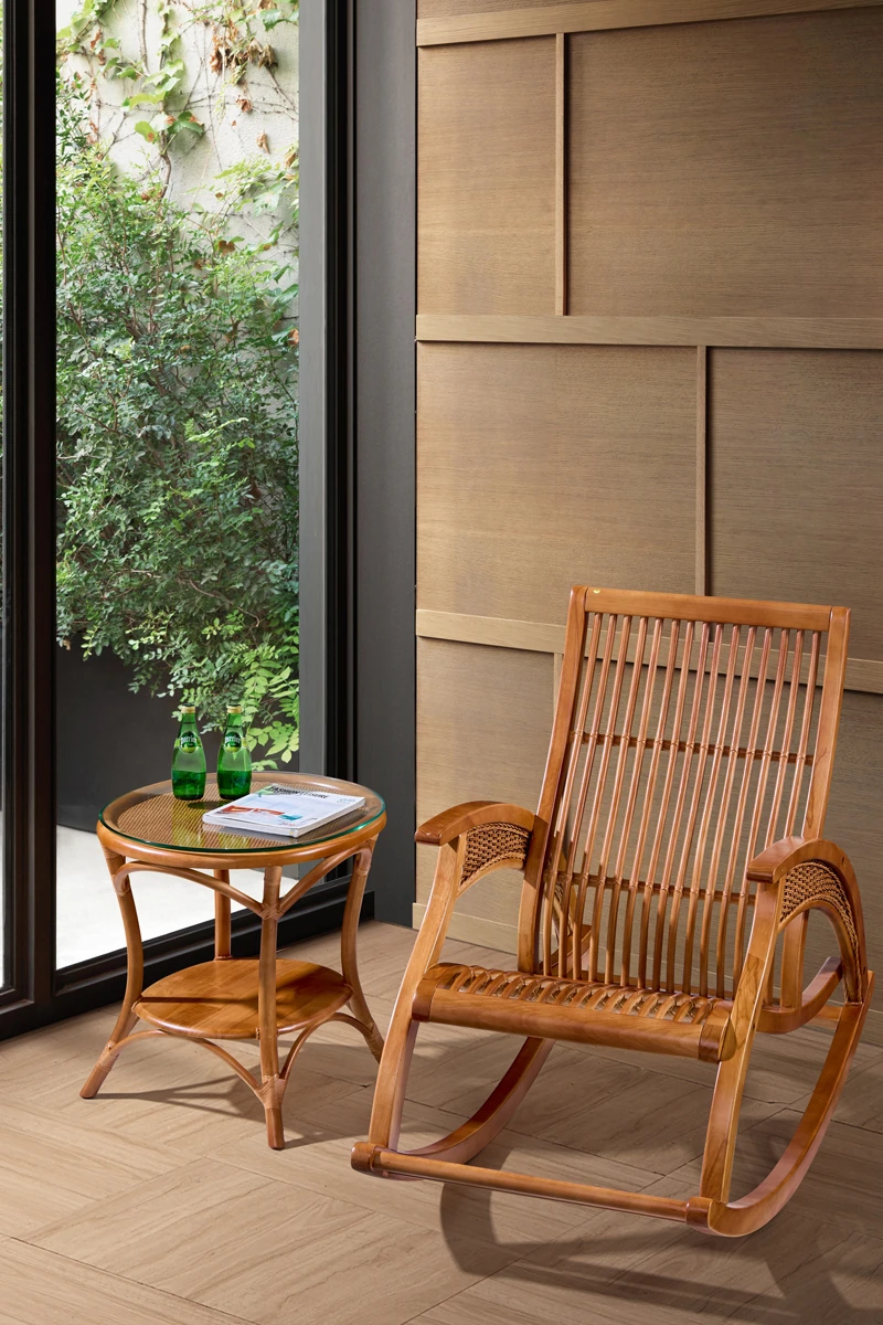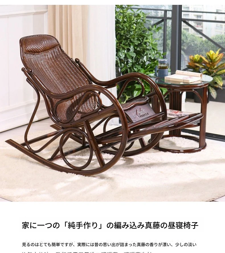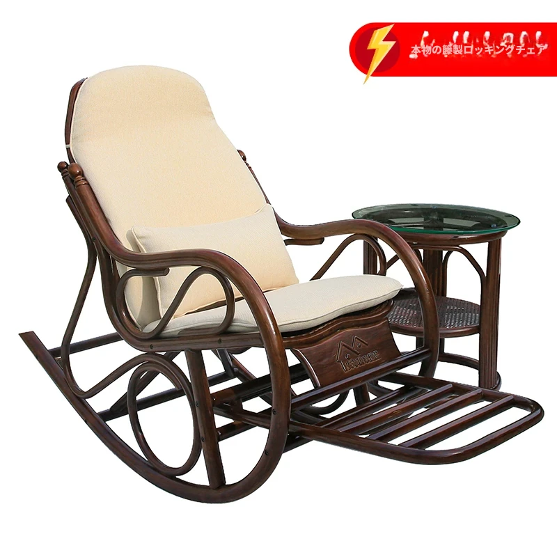 紅茶色のロッキングチェア+テーブル【本藤】-クッション付き