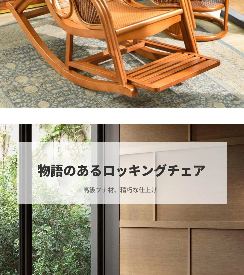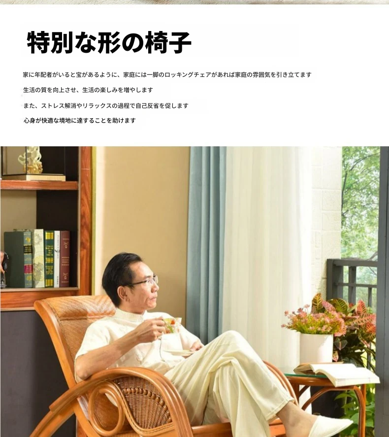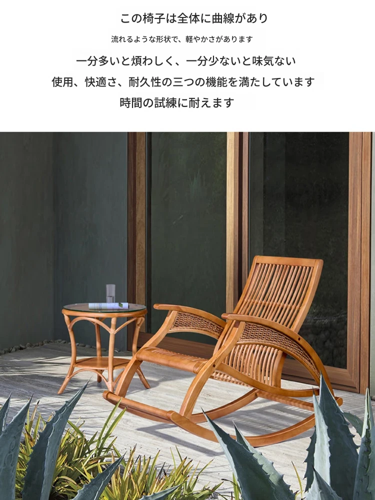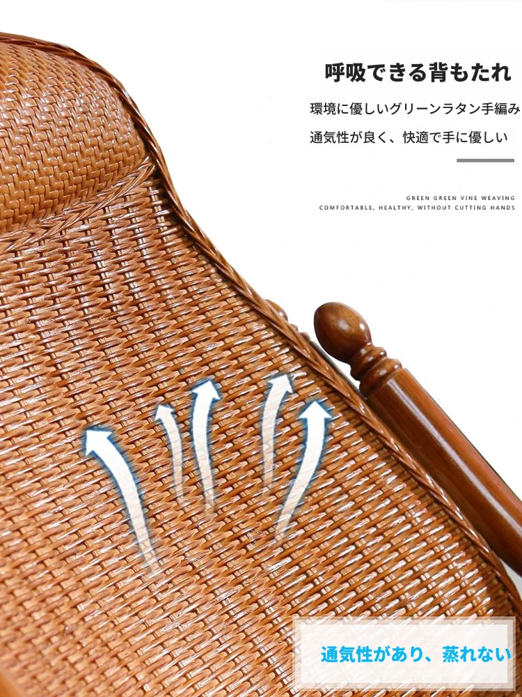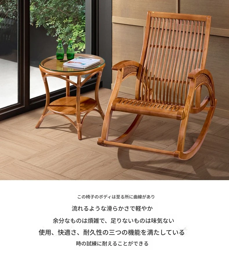 2024年新作ロッキングチェア【ブナ+円柱編み藤】二重収納テーブル