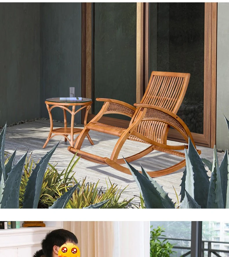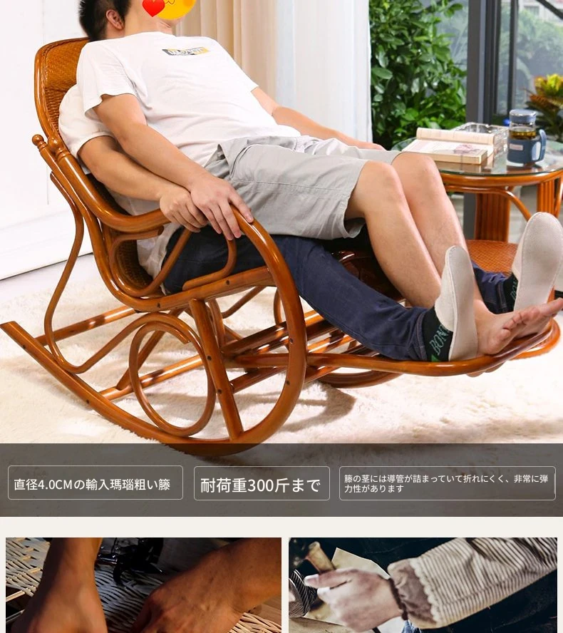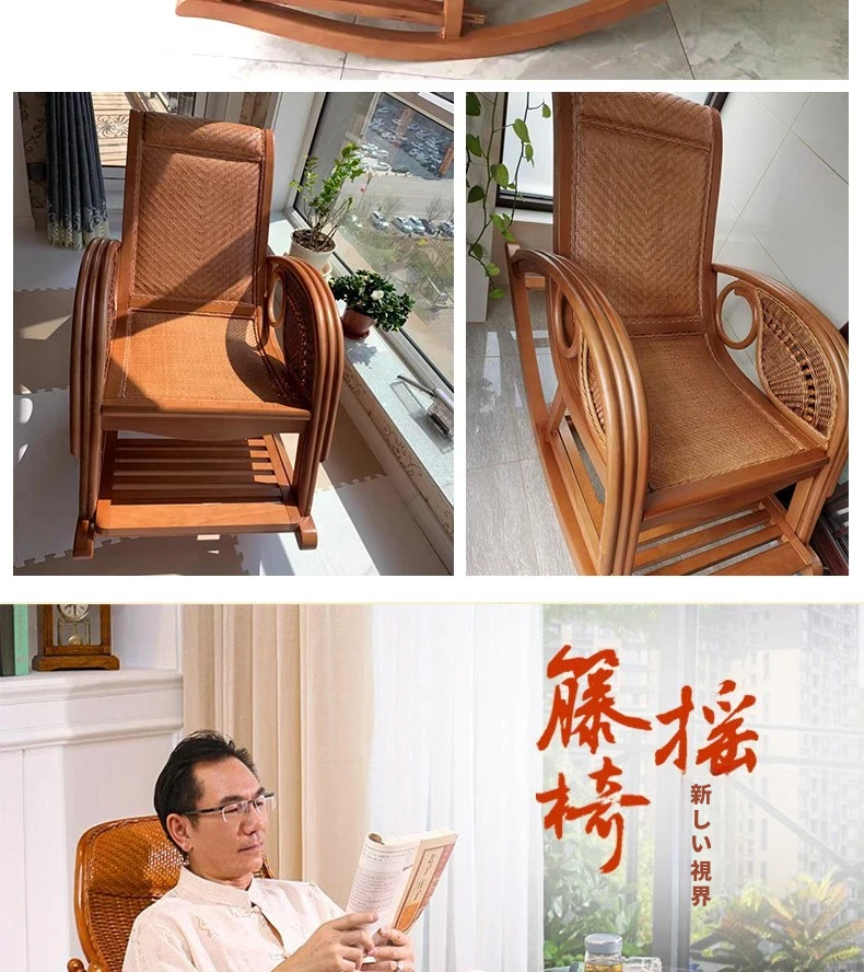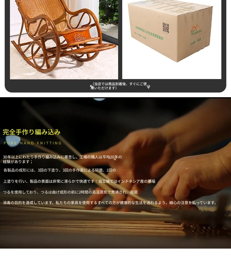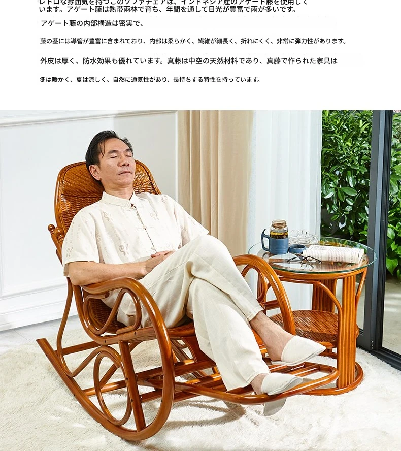 2024年新作ロッキングチェア【ブナ+円柱編み藤】二重収納テーブル