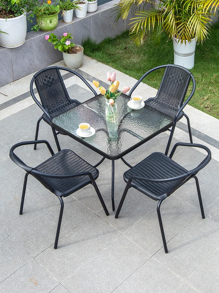 防水・防晒のアウトドアテーブル&チェアセット!中華風バルコニーにぴったりなモダンでシンプルなデザイン。小型スペースでも大活躍!カフェ感あふれるリラックスタイムをお楽しみください。