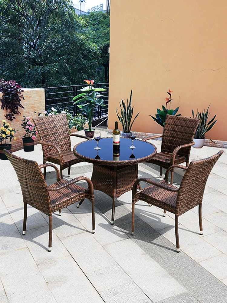 ファン派 バルコニー用リラックスデスク&チェア ガーデンラタン背もたれ椅子 家庭用屋外読書に最適 シンプルな岩板ティーテーブル3点セット