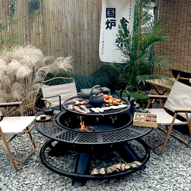 ヴァンパイ囲炉裏で楽しむ茶煮と焼き火炉セット!アウトドアバーベキューや庭でのひとときに最適。暖かい冬のキャンプやお茶を楽しむための柴テーブル火炉で、心温まる時間をお過ごしください。