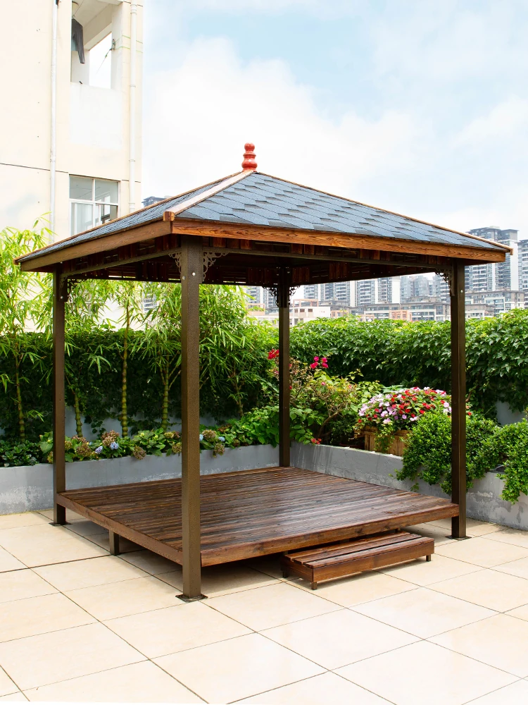 ヴァンパイのアウトドアパビリオン - ヴィラ庭園用の防水・UVカット日よけテント。四隅が美しい古風なデザインで、快適な屋外空間を演出します。おしゃれな庭のアクセントに最適!